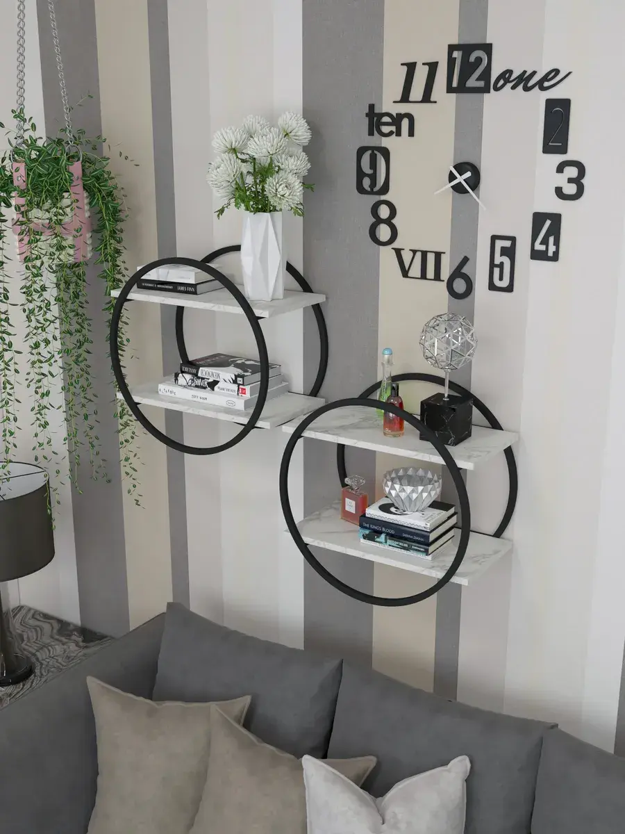 Набор полок круглых настенных черно-белых - ЧБ