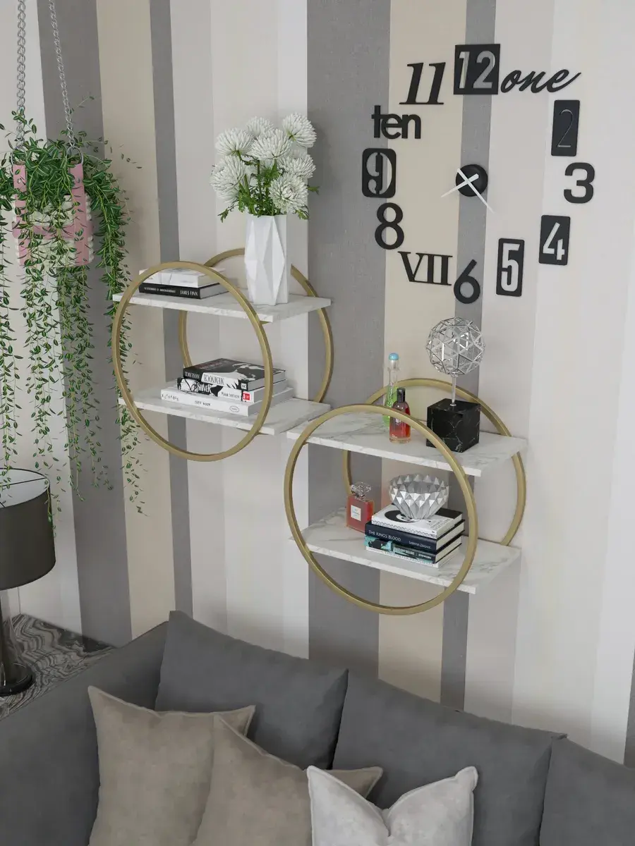 Набор полок круглых настенных злато-белых - ЗБ