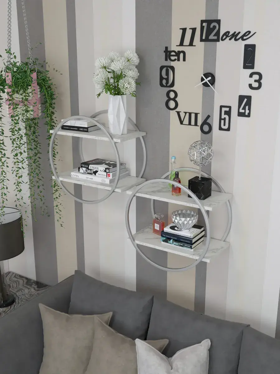 Набор полок круглых настенных серебро-белых - СБ