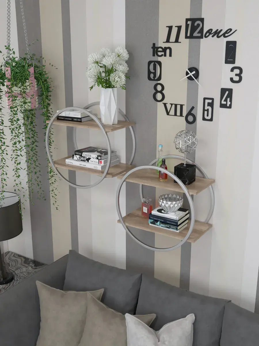 Набор полок круглых настенных серебро-дуб - СД