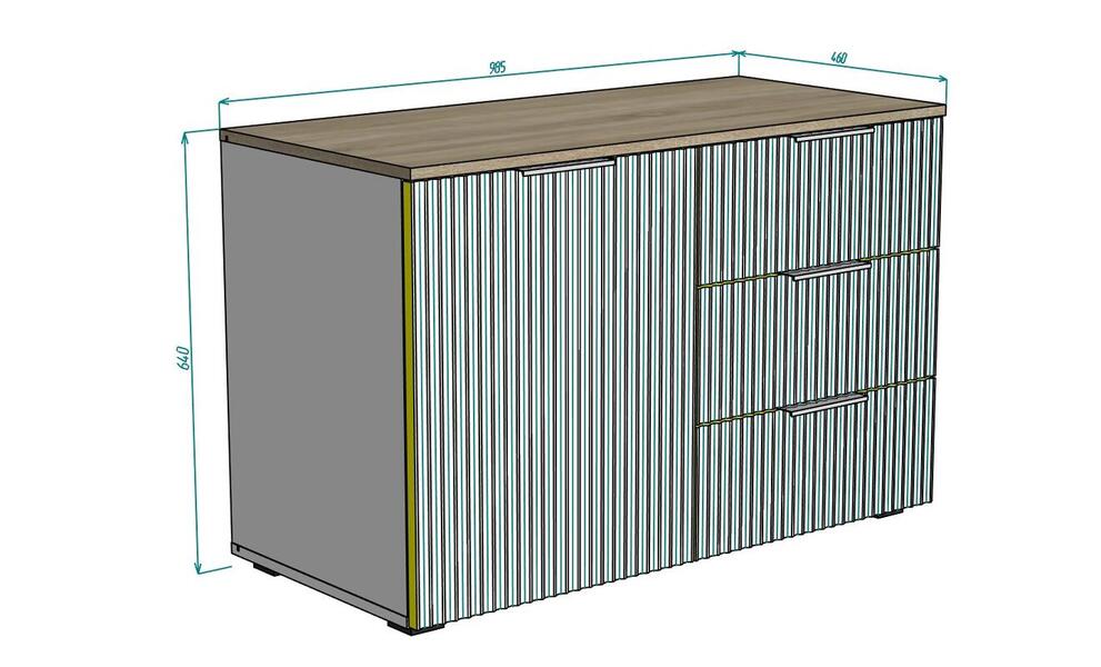 Мебель напрямую от фабрики. Можем менять габариты, цвет, варианты обивки и фасадов. Комод Салерно 3 (МДФ) отличается высоким качеством материалов и сборки, что гарантирует долговечность и надежность. Современный дизайн гармонично впишется в любой интерьер, а продуманная эргономика обеспечит максимальный комфорт. Преимущества комода Салерно 3 (МДФ) Высокое качество и долговечность Современный и стильный дизайн Продуманная эргономика для максимального комфорта Простота в уходе и обслуживании Комод Салерно 3 (МДФ) - идеальное решение для тех, кто ценит качество, комфорт и красоту. Весь ассортимент мебели от фабрики производится по самым высоким стандартам с использованием передовых технологий. Мы гарантируем безупречное качество каждого изделия и полное соответствие всем необходимым нормам и требованиям. Характеристики комода Салерно 3 (МДФ) Исполнение Материал фасадов: SF-019 Графит Материал корпуса: ЛДСП Серый графит 0162 РЕ / Дуб Золотистый U1148 / Оргалит Габариты (Ширина*Глубина*Высота) 98,5*46*64 см Гарантия: 24 месяца Обновлено:22.02.2026