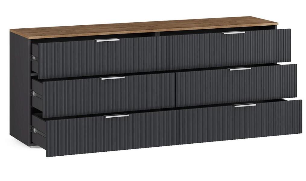Мебель напрямую от фабрики. Можем менять габариты, цвет, варианты обивки и фасадов. Комод Салерно 6 (МДФ) отличается высоким качеством материалов и сборки, что гарантирует долговечность и надежность. Современный дизайн гармонично впишется в любой интерьер, а продуманная эргономика обеспечит максимальный комфорт. Преимущества комода Салерно 6 (МДФ) Высокое качество и долговечность Современный и стильный дизайн Продуманная эргономика для максимального комфорта Простота в уходе и обслуживании Комод Салерно 6 (МДФ) - идеальное решение для тех, кто ценит качество, комфорт и красоту. Весь ассортимент мебели от фабрики производится по самым высоким стандартам с использованием передовых технологий. Мы гарантируем безупречное качество каждого изделия и полное соответствие всем необходимым нормам и требованиям. Характеристики комода Салерно 6 (МДФ) Исполнение Материал фасадов: SF-019 Графит Материал корпуса: ЛДСП Серый графит 0162 РЕ / Дуб Золотистый U1148 / Оргалит Габариты (Ширина*Глубина*Высота) 182*42*72 см Гарантия: 24 месяца Обновлено:22.02.2026