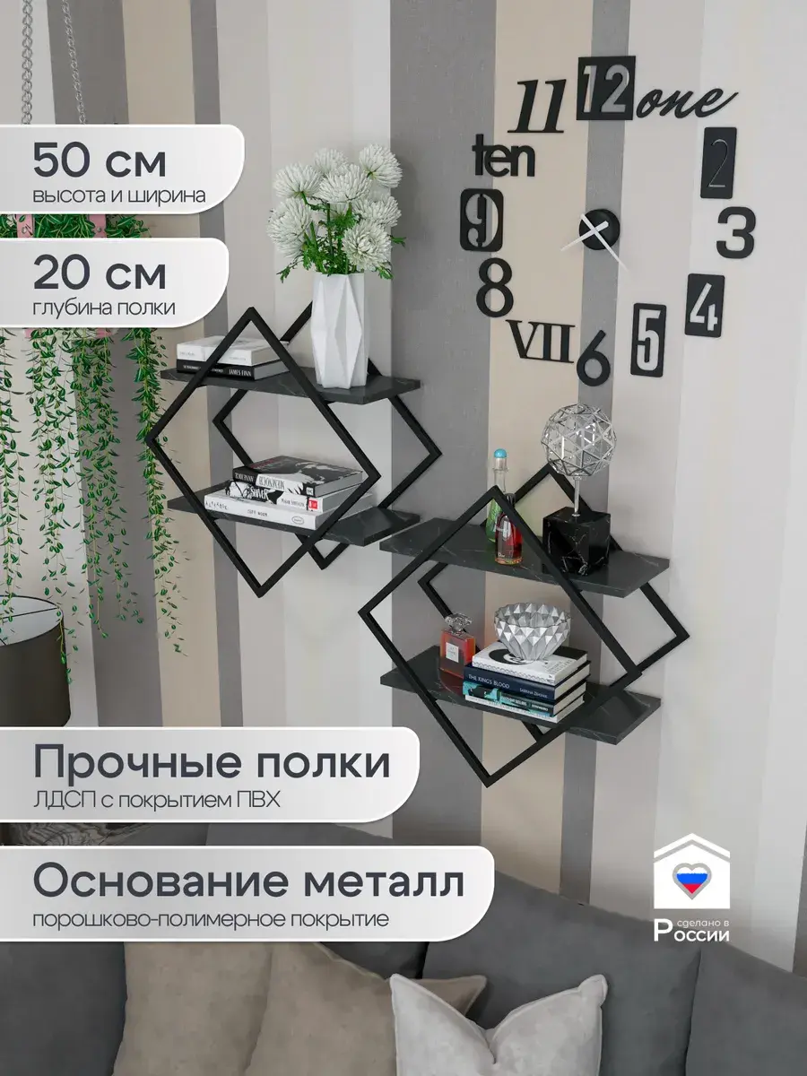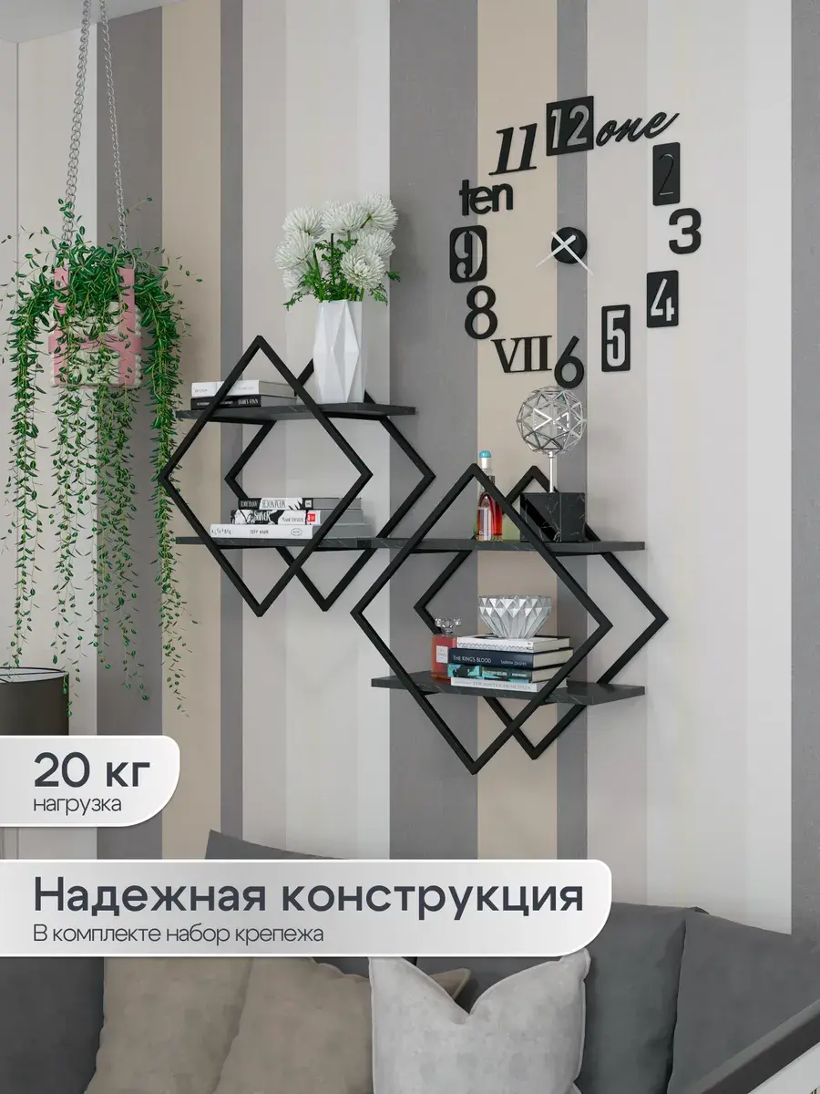 Хотите добавить стиля и функциональности в свою гостиную комнату или кухню? Обратите внимание на нашу новинку — настенную полку «Ромб»! Эта полка не только украсит ваш интерьер, но и поможет организовать хранение различных предметов. Благодаря разнообразию расцветок она легко впишется в любой дизайн. Полка изготовлена из ЛДСП, что обеспечивает ей прочность и долговечность. Её легко поддерживать в чистоте, поэтому поддерживать порядок в вашем доме будет просто. Кроме того, надёжное крепление к стене гарантирует безопасность использования. Важно отметить, что полку не рекомендуется использовать во влажных помещениях. Контакт с водой и жидкостями может привести к разбуханию и разрушению поверхности. Поэтому избегайте попадания влаги на полку. Не упустите возможность добавить яркий акцент в ваш дом с помощью нашей стильной и функциональной настенной полки! Создавайте уют и комфорт с современной мебелью для вашей гостиной и спальной комнаты.