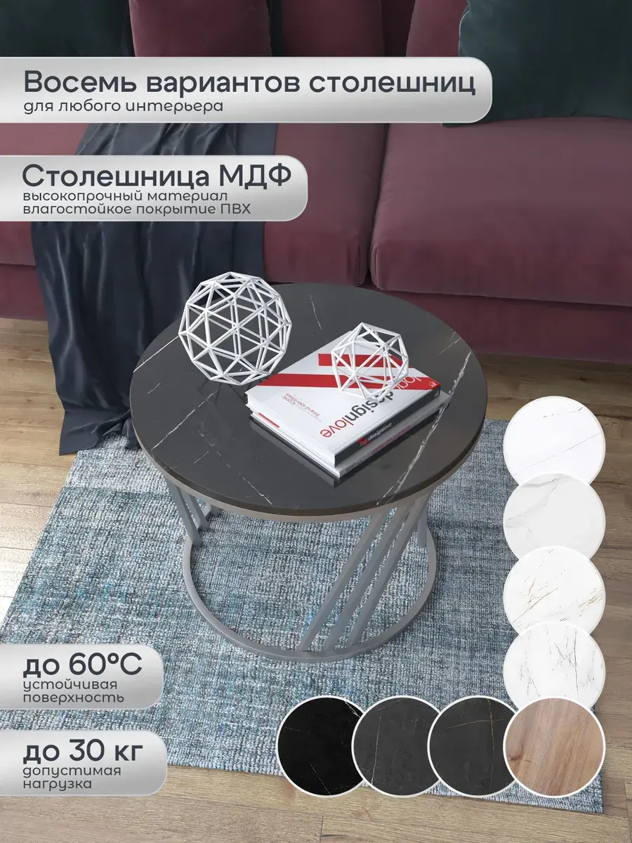 Журнальный стол "Адидас" — это стильное и функциональное дополнение к вашему интерьеру. Его уникальный дизайн и высокое качество сразу привлекают внимание. Столешница влагостойкая, а основание покрыто прочной полимерно-порошковой краской. Благодаря этому он не только привлекательно выглядит, но и очень практичен. Конструкция столика надёжна, он выдерживает нагрузку на столешницу до 30 кг. Это позволяет разместить на нём различные предметы декора или напитки. Цвет основания: серебро, столешницы: мрамор черный глянцевый. Основание выполнено из квадратной профильной трубы 15х15 толщиной 1.2мм Этот журнальный столик удобен в использовании. Он не царапает пол и не шатается, обеспечивая дополнительный комфорт при эксплуатации. Производство в России гарантирует высокое качество товара и его соответствие всем стандартам. Кроме того, столик поставляется уже собранным. Вам не придётся тратить время и силы на его сборку. Просто распакуйте его и наслаждайтесь преимуществами этого прекрасного изделия. Круглый журнальный столик со столешницей под мрамор — это не просто мебель. Это настоящее произведение искусства, которое подчеркнёт ваш вкус и станет главным акцентом в вашем доме. Покупая этот столик, вы получаете не только функциональную мебель, но и предмет декора, который добавит шарма и уюта в ваше пространство. Не упустите возможность купить этот уникальный журнальный столик и создать уютный уголок в вашем доме, который будет радовать вас каждый день.