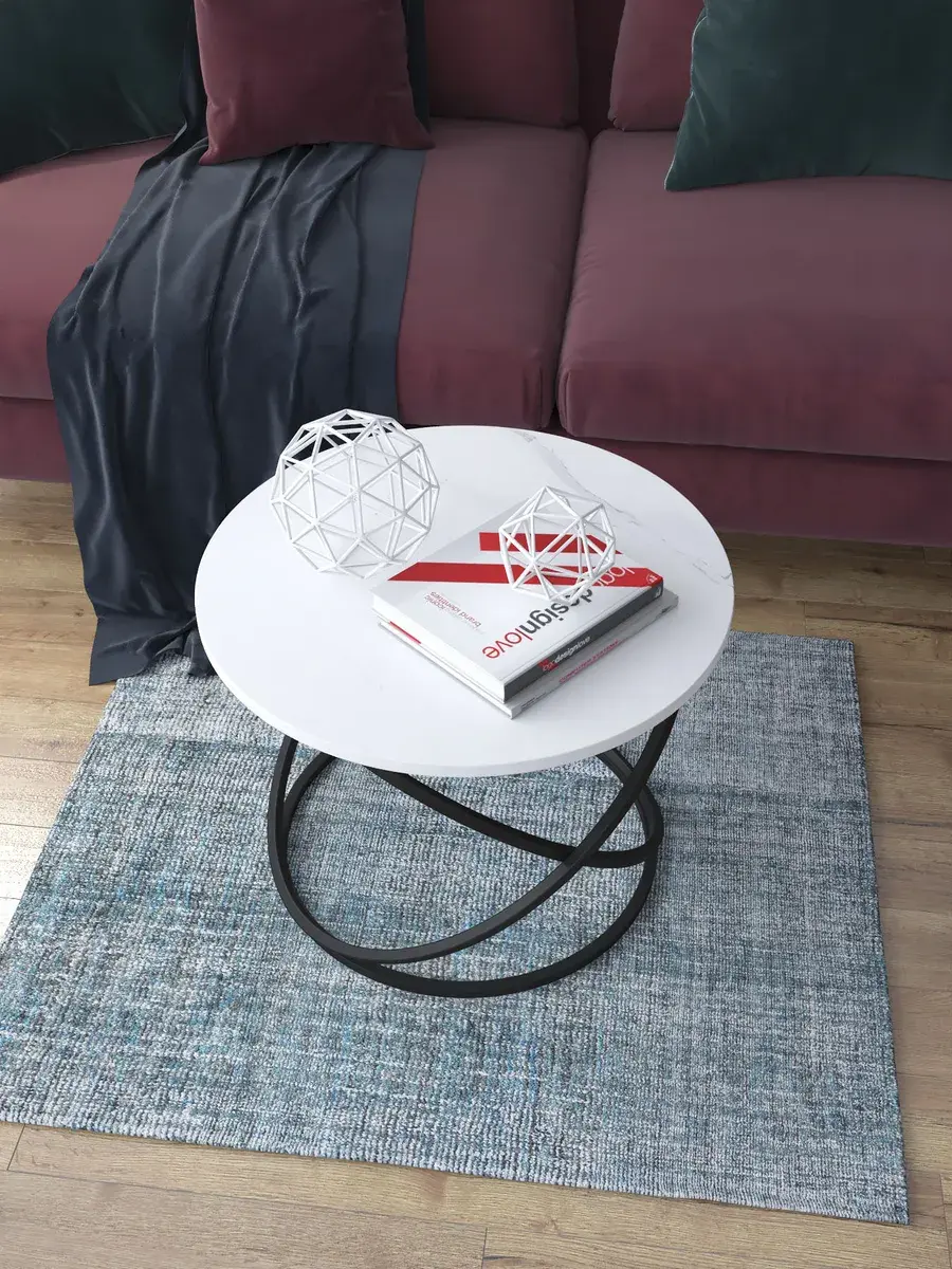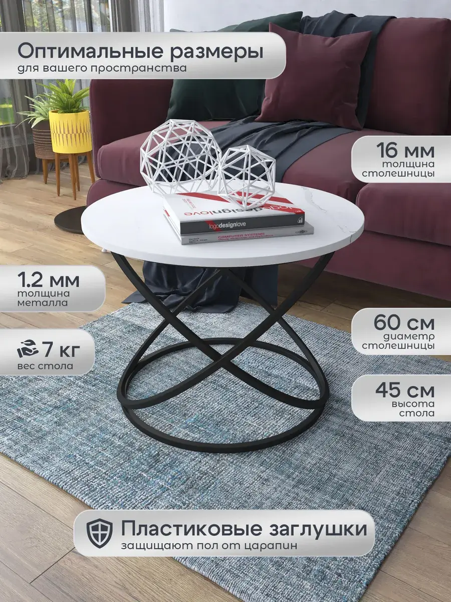 Журнальный стол "Инфинити" — это стильное и функциональное дополнение к вашему интерьеру. Его уникальный дизайн и высокое качество сразу привлекают внимание. Столешница влагостойкая, а основание покрыто прочной полимерно-порошковой краской. Благодаря этому он не только привлекательно выглядит, но и очень практичен. Конструкция столика надёжна, он выдерживает нагрузку на столешницу до 30 кг. Это позволяет разместить на нём различные предметы декора или напитки. Цвет основания: черный, столешницы: мрамор белый матовый. Основание выполнено из квадратной профильной трубы 15х15 толщиной 1.2мм Этот журнальный столик удобен в использовании. Он не царапает пол и не шатается, обеспечивая дополнительный комфорт при эксплуатации. Производство в России гарантирует высокое качество товара и его соответствие всем стандартам. Кроме того, столик поставляется уже собранным. Вам не придётся тратить время и силы на его сборку. Просто распакуйте его и наслаждайтесь преимуществами этого прекрасного изделия. Круглый журнальный столик со столешницей под мрамор — это не просто мебель. Это настоящее произведение искусства, которое подчеркнёт ваш вкус и станет главным акцентом в вашем доме. Покупая этот столик, вы получаете не только функциональную мебель, но и предмет декора, который добавит шарма и уюта в ваше пространство. Не упустите возможность купить этот уникальный журнальный столик и создать уютный уголок в вашем доме, который будет радовать вас каждый день.