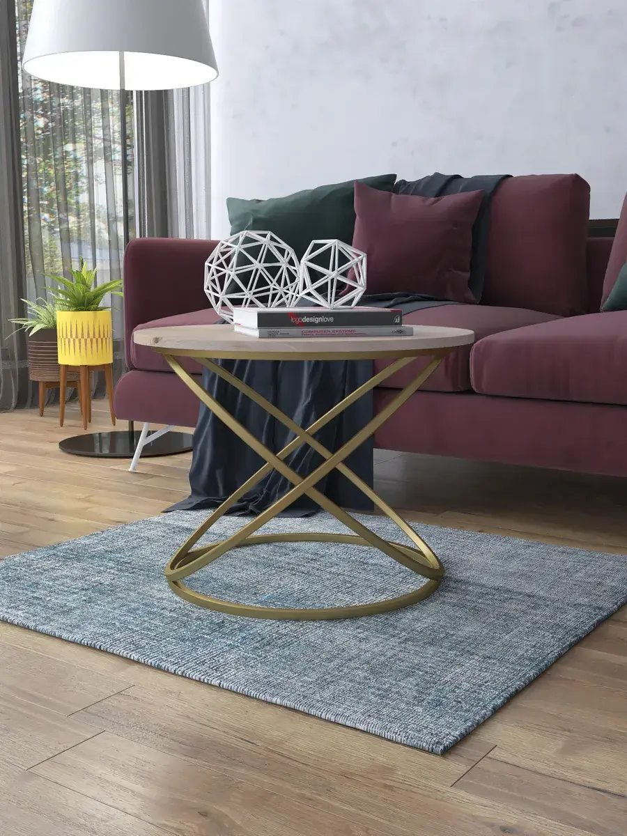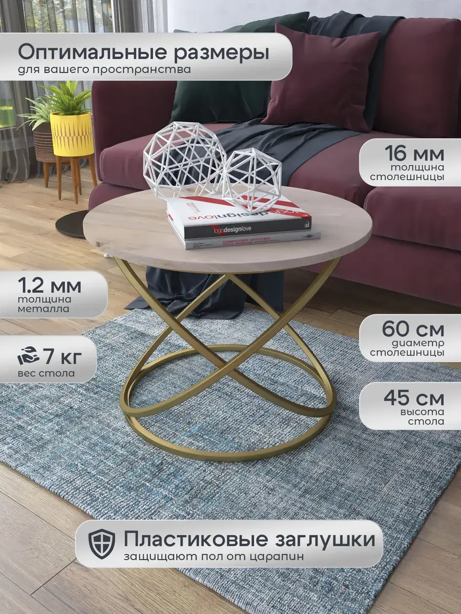 Журнальный стол "Инфинити" — это стильное и функциональное дополнение к вашему интерьеру. Его уникальный дизайн и высокое качество сразу привлекают внимание. Столешница влагостойкая, а основание покрыто прочной полимерно-порошковой краской. Благодаря этому он не только привлекательно выглядит, но и очень практичен. Конструкция столика надёжна, он выдерживает нагрузку на столешницу до 30 кг. Это позволяет разместить на нём различные предметы декора или напитки. Цвет основания: золото, столешницы: дуб натуральный. Основание выполнено из квадратной профильной трубы 15х15 толщиной 1.2мм Этот журнальный столик удобен в использовании. Он не царапает пол и не шатается, обеспечивая дополнительный комфорт при эксплуатации. Производство в России гарантирует высокое качество товара и его соответствие всем стандартам. Кроме того, столик поставляется уже собранным. Вам не придётся тратить время и силы на его сборку. Просто распакуйте его и наслаждайтесь преимуществами этого прекрасного изделия. Круглый журнальный столик со столешницей под мрамор — это не просто мебель. Это настоящее произведение искусства, которое подчеркнёт ваш вкус и станет главным акцентом в вашем доме. Покупая этот столик, вы получаете не только функциональную мебель, но и предмет декора, который добавит шарма и уюта в ваше пространство. Не упустите возможность купить этот уникальный журнальный столик и создать уютный уголок в вашем доме, который будет радовать вас каждый день.