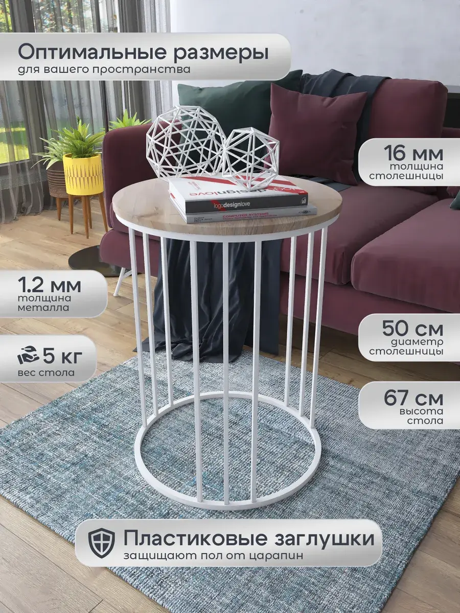В мире, где каждый элемент интерьера способен рассказать свою историю, журнальный столик круглый "Трио" становится настоящим произведением искусства. Этот удивительный стол журнальный не просто функционален, он становится центром притяжения в вашей гостиной, создавая атмосферу уюта и стиля. Его элегантная форма и современный дизайн делают его идеальным дополнением для любой обстановки, будь то классический или модерн. Столешница из МДФ в пленке ПВХ, окрашенная в натуральный дуб, придаёт этому журнальному столу особую теплоту и привлекательность. С металлической конструкцией, этот столик журнальный обеспечивает прочность и долговечность, выдерживая нагрузку до 30 кг. Высота в 67 см и компактные размеры 50х50 см делают его идеальным для уютных встреч с друзьями за чашечкой кофе или для чтения любимой книги. Несмотря на отсутствие полок и колес, этот кофейный столик легко вписывается в любое пространство благодаря своему стильному белому основанию. При этом, он не требует сборки — просто разместите его в нужном месте, и он готов к использованию! Этот стол круглый станет не только элементом декора, но и практичным решением для вашего дома. Не упустите шанс добавить в свою жизнь этот изысканный столик прикроватный, который гармонично дополнит ваш интерьер. Пора сделать шаг навстречу стилю и комфорту — покупайте журнальный столик круглый "Трио" уже сегодня!