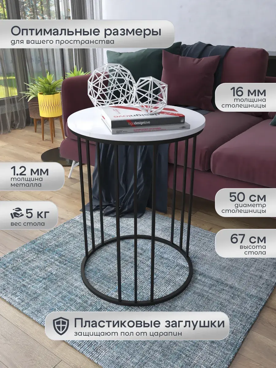 Журнальный стол "Трио" — это стильное и функциональное дополнение к вашему интерьеру. Его уникальный дизайн и высокое качество сразу привлекают внимание. Столешница влагостойкая, а основание покрыто прочной полимерно-порошковой краской. Благодаря этому он не только привлекательно выглядит, но и очень практичен. Конструкция столика надёжна, он выдерживает нагрузку на столешницу до 30 кг. Это позволяет разместить на нём различные предметы декора или напитки. Цвет основания: черный, столешницы: мрамор белый глянцевый. Основание выполнено из квадратной профильной трубы 15х15 толщиной 1.2мм Этот журнальный столик удобен в использовании. Он не царапает пол и не шатается, обеспечивая дополнительный комфорт при эксплуатации. Производство в России гарантирует высокое качество товара и его соответствие всем стандартам. Кроме того, столик поставляется уже собранным. Вам не придётся тратить время и силы на его сборку. Просто распакуйте его и наслаждайтесь преимуществами этого прекрасного изделия. Круглый журнальный столик со столешницей под мрамор — это не просто мебель. Это настоящее произведение искусства, которое подчеркнёт ваш вкус и станет главным акцентом в вашем доме. Покупая этот столик, вы получаете не только функциональную мебель, но и предмет декора, который добавит шарма и уюта в ваше пространство. Не упустите возможность купить этот уникальный журнальный столик и создать уютный уголок в вашем доме, который будет радовать вас каждый день.