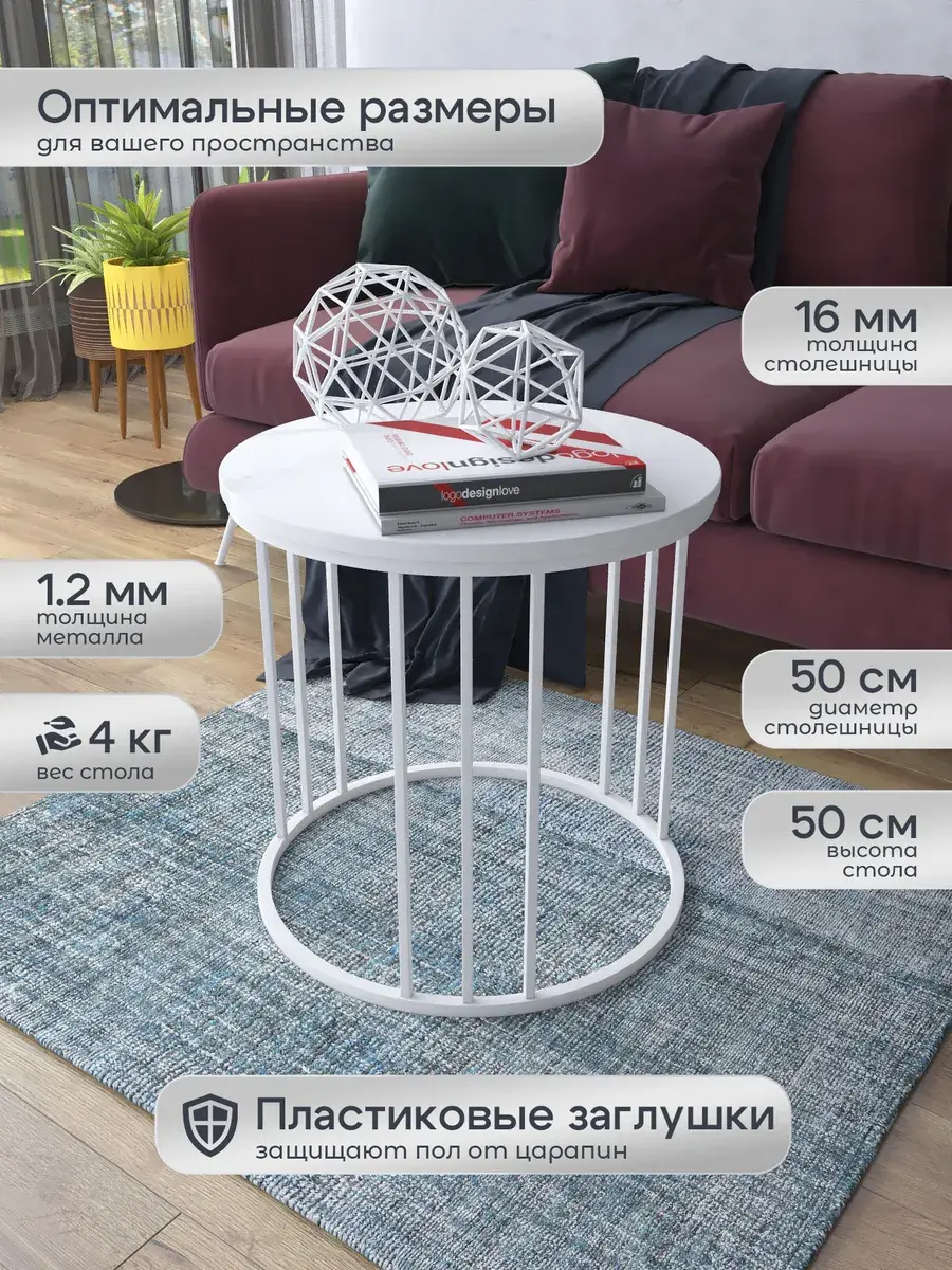 Журнальный стол "Трио малый" — это стильное и функциональное дополнение к вашему интерьеру. Его уникальный дизайн и высокое качество сразу привлекают внимание. Столешница влагостойкая, а основание покрыто прочной полимерно-порошковой краской. Благодаря этому он не только привлекательно выглядит, но и очень практичен. Конструкция столика надёжна, он выдерживает нагрузку на столешницу до 30 кг. Это позволяет разместить на нём различные предметы декора или напитки. Цвет основания: белый, столешницы: мрамор белый матовый. Основание выполнено из квадратной профильной трубы 15х15 толщиной 1.2мм Этот журнальный столик удобен в использовании. Он не царапает пол и не шатается, обеспечивая дополнительный комфорт при эксплуатации. Производство в России гарантирует высокое качество товара и его соответствие всем стандартам. Кроме того, столик поставляется уже собранным. Вам не придётся тратить время и силы на его сборку. Просто распакуйте его и наслаждайтесь преимуществами этого прекрасного изделия. Круглый журнальный столик со столешницей под мрамор — это не просто мебель. Это настоящее произведение искусства, которое подчеркнёт ваш вкус и станет главным акцентом в вашем доме. Покупая этот столик, вы получаете не только функциональную мебель, но и предмет декора, который добавит шарма и уюта в ваше пространство. Не упустите возможность купить этот уникальный журнальный столик и создать уютный уголок в вашем доме, который будет радовать вас каждый день.