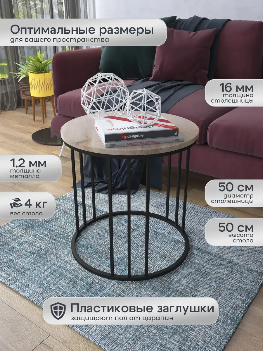 Журнальный стол "Трио малый" — это стильное и функциональное дополнение к вашему интерьеру. Его уникальный дизайн и высокое качество сразу привлекают внимание. Столешница влагостойкая, а основание покрыто прочной полимерно-порошковой краской. Благодаря этому он не только привлекательно выглядит, но и очень практичен. Конструкция столика надёжна, он выдерживает нагрузку на столешницу до 30 кг. Это позволяет разместить на нём различные предметы декора или напитки. Цвет основания: черный, столешницы: дуб натуральный. Основание выполнено из квадратной профильной трубы 15х15 толщиной 1.2мм Этот журнальный столик удобен в использовании. Он не царапает пол и не шатается, обеспечивая дополнительный комфорт при эксплуатации. Производство в России гарантирует высокое качество товара и его соответствие всем стандартам. Кроме того, столик поставляется уже собранным. Вам не придётся тратить время и силы на его сборку. Просто распакуйте его и наслаждайтесь преимуществами этого прекрасного изделия. Круглый журнальный столик со столешницей под мрамор — это не просто мебель. Это настоящее произведение искусства, которое подчеркнёт ваш вкус и станет главным акцентом в вашем доме. Покупая этот столик, вы получаете не только функциональную мебель, но и предмет декора, который добавит шарма и уюта в ваше пространство. Не упустите возможность купить этот уникальный журнальный столик и создать уютный уголок в вашем доме, который будет радовать вас каждый день.