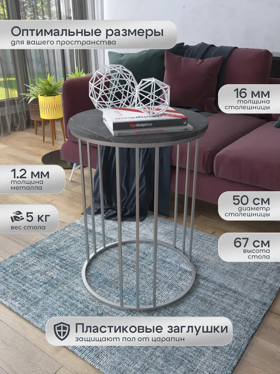 Журнальный стол "Трио" — это стильное и функциональное дополнение к вашему интерьеру. Его уникальный дизайн и высокое качество сразу привлекают внимание. Столешница влагостойкая, а основание покрыто прочной полимерно-порошковой краской. Благодаря этому он не только привлекательно выглядит, но и очень практичен. Конструкция столика надёжна, он выдерживает нагрузку на столешницу до 30 кг. Это позволяет разместить на нём различные предметы декора или напитки. Цвет основания: серебро, столешницы: мрамор серебро черный матовый. Основание выполнено из квадратной профильной трубы 15х15 толщиной 1.2мм Этот журнальный столик удобен в использовании. Он не царапает пол и не шатается, обеспечивая дополнительный комфорт при эксплуатации. Производство в России гарантирует высокое качество товара и его соответствие всем стандартам. Кроме того, столик поставляется уже собранным. Вам не придётся тратить время и силы на его сборку. Просто распакуйте его и наслаждайтесь преимуществами этого прекрасного изделия. Круглый журнальный столик со столешницей под мрамор — это не просто мебель. Это настоящее произведение искусства, которое подчеркнёт ваш вкус и станет главным акцентом в вашем доме. Покупая этот столик, вы получаете не только функциональную мебель, но и предмет декора, который добавит шарма и уюта в ваше пространство. Не упустите возможность купить этот уникальный журнальный столик и создать уютный уголок в вашем доме, который будет радовать вас каждый день.