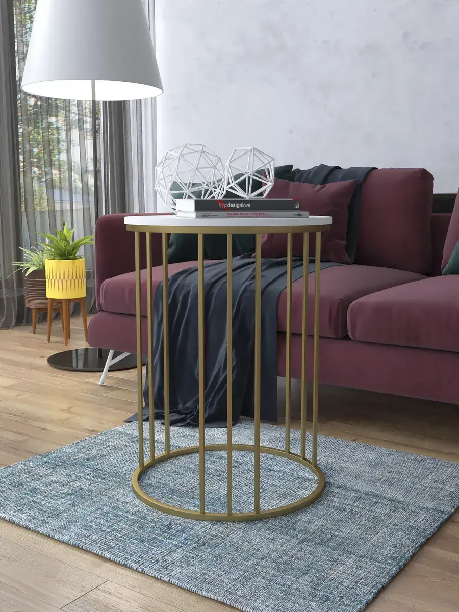 Журнальный стол "Трио" — это стильное и функциональное дополнение к вашему интерьеру. Его уникальный дизайн и высокое качество сразу привлекают внимание. Столешница влагостойкая, а основание покрыто прочной полимерно-порошковой краской. Благодаря этому он не только привлекательно выглядит, но и очень практичен. Конструкция столика надёжна, он выдерживает нагрузку на столешницу до 30 кг. Это позволяет разместить на нём различные предметы декора или напитки. Цвет основания: золото, столешницы: мрамор белый матовый. Основание выполнено из квадратной профильной трубы 15х15 толщиной 1.2мм Этот журнальный столик удобен в использовании. Он не царапает пол и не шатается, обеспечивая дополнительный комфорт при эксплуатации. Производство в России гарантирует высокое качество товара и его соответствие всем стандартам. Кроме того, столик поставляется уже собранным. Вам не придётся тратить время и силы на его сборку. Просто распакуйте его и наслаждайтесь преимуществами этого прекрасного изделия. Круглый журнальный столик со столешницей под мрамор — это не просто мебель. Это настоящее произведение искусства, которое подчеркнёт ваш вкус и станет главным акцентом в вашем доме. Покупая этот столик, вы получаете не только функциональную мебель, но и предмет декора, который добавит шарма и уюта в ваше пространство. Не упустите возможность купить этот уникальный журнальный столик и создать уютный уголок в вашем доме, который будет радовать вас каждый день.