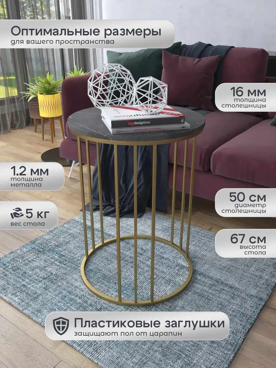 Журнальный стол "Трио" — это стильное и функциональное дополнение к вашему интерьеру. Его уникальный дизайн и высокое качество сразу привлекают внимание. Столешница влагостойкая, а основание покрыто прочной полимерно-порошковой краской. Благодаря этому он не только привлекательно выглядит, но и очень практичен. Конструкция столика надёжна, он выдерживает нагрузку на столешницу до 30 кг. Это позволяет разместить на нём различные предметы декора или напитки. Цвет основания: золото, столешницы: мрамор серебро черный матовый. Основание выполнено из квадратной профильной трубы 15х15 толщиной 1.2мм Этот журнальный столик удобен в использовании. Он не царапает пол и не шатается, обеспечивая дополнительный комфорт при эксплуатации. Производство в России гарантирует высокое качество товара и его соответствие всем стандартам. Кроме того, столик поставляется уже собранным. Вам не придётся тратить время и силы на его сборку. Просто распакуйте его и наслаждайтесь преимуществами этого прекрасного изделия. Круглый журнальный столик со столешницей под мрамор — это не просто мебель. Это настоящее произведение искусства, которое подчеркнёт ваш вкус и станет главным акцентом в вашем доме. Покупая этот столик, вы получаете не только функциональную мебель, но и предмет декора, который добавит шарма и уюта в ваше пространство. Не упустите возможность купить этот уникальный журнальный столик и создать уютный уголок в вашем доме, который будет радовать вас каждый день.