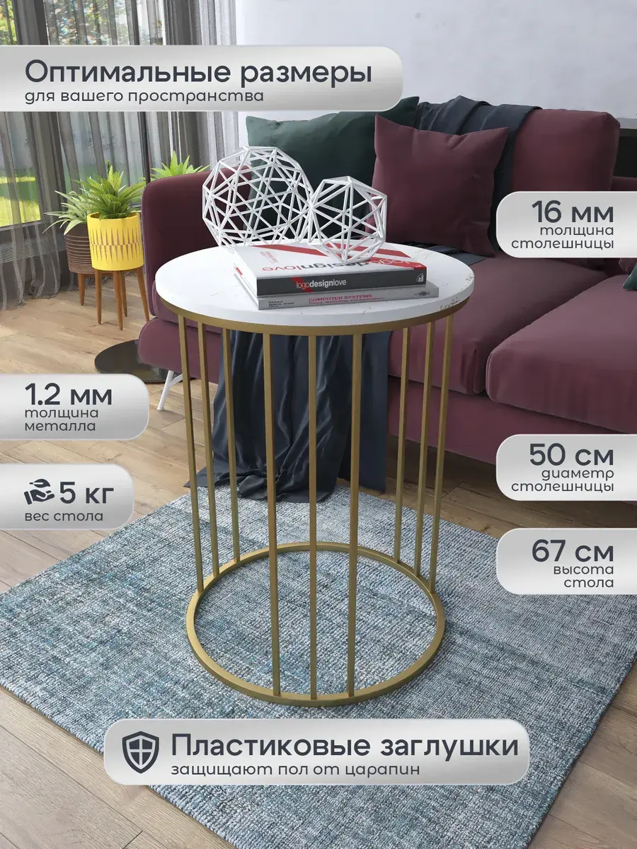Журнальный стол "Трио" — это стильное и функциональное дополнение к вашему интерьеру. Его уникальный дизайн и высокое качество сразу привлекают внимание. Столешница влагостойкая, а основание покрыто прочной полимерно-порошковой краской. Благодаря этому он не только привлекательно выглядит, но и очень практичен. Конструкция столика надёжна, он выдерживает нагрузку на столешницу до 30 кг. Это позволяет разместить на нём различные предметы декора или напитки. Цвет основания: золото, столешницы: мрамор золото белый матовый. Основание выполнено из квадратной профильной трубы 15х15 толщиной 1.2мм Этот журнальный столик удобен в использовании. Он не царапает пол и не шатается, обеспечивая дополнительный комфорт при эксплуатации. Производство в России гарантирует высокое качество товара и его соответствие всем стандартам. Кроме того, столик поставляется уже собранным. Вам не придётся тратить время и силы на его сборку. Просто распакуйте его и наслаждайтесь преимуществами этого прекрасного изделия. Круглый журнальный столик со столешницей под мрамор — это не просто мебель. Это настоящее произведение искусства, которое подчеркнёт ваш вкус и станет главным акцентом в вашем доме. Покупая этот столик, вы получаете не только функциональную мебель, но и предмет декора, который добавит шарма и уюта в ваше пространство. Не упустите возможность купить этот уникальный журнальный столик и создать уютный уголок в вашем доме, который будет радовать вас каждый день.