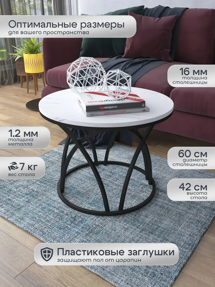 Журнальный стол "Тюльпан" — это стильное и функциональное дополнение к вашему интерьеру. Его уникальный дизайн и высокое качество сразу привлекают внимание. Столешница влагостойкая, а основание покрыто прочной полимерно-порошковой краской. Благодаря этому он не только привлекательно выглядит, но и очень практичен. Конструкция столика надёжна, он выдерживает нагрузку на столешницу до 30 кг. Это позволяет разместить на нём различные предметы декора или напитки. Цвет основания: черный, столешницы: мрамор серебро белый матовый. Основание выполнено из квадратной профильной трубы 15х15 толщиной 1.2мм Этот журнальный столик удобен в использовании. Он не царапает пол и не шатается, обеспечивая дополнительный комфорт при эксплуатации. Производство в России гарантирует высокое качество товара и его соответствие всем стандартам. Кроме того, столик поставляется уже собранным. Вам не придётся тратить время и силы на его сборку. Просто распакуйте его и наслаждайтесь преимуществами этого прекрасного изделия. Круглый журнальный столик со столешницей под мрамор — это не просто мебель. Это настоящее произведение искусства, которое подчеркнёт ваш вкус и станет главным акцентом в вашем доме. Покупая этот столик, вы получаете не только функциональную мебель, но и предмет декора, который добавит шарма и уюта в ваше пространство. Не упустите возможность купить этот уникальный журнальный столик и создать уютный уголок в вашем доме, который будет радовать вас каждый день.