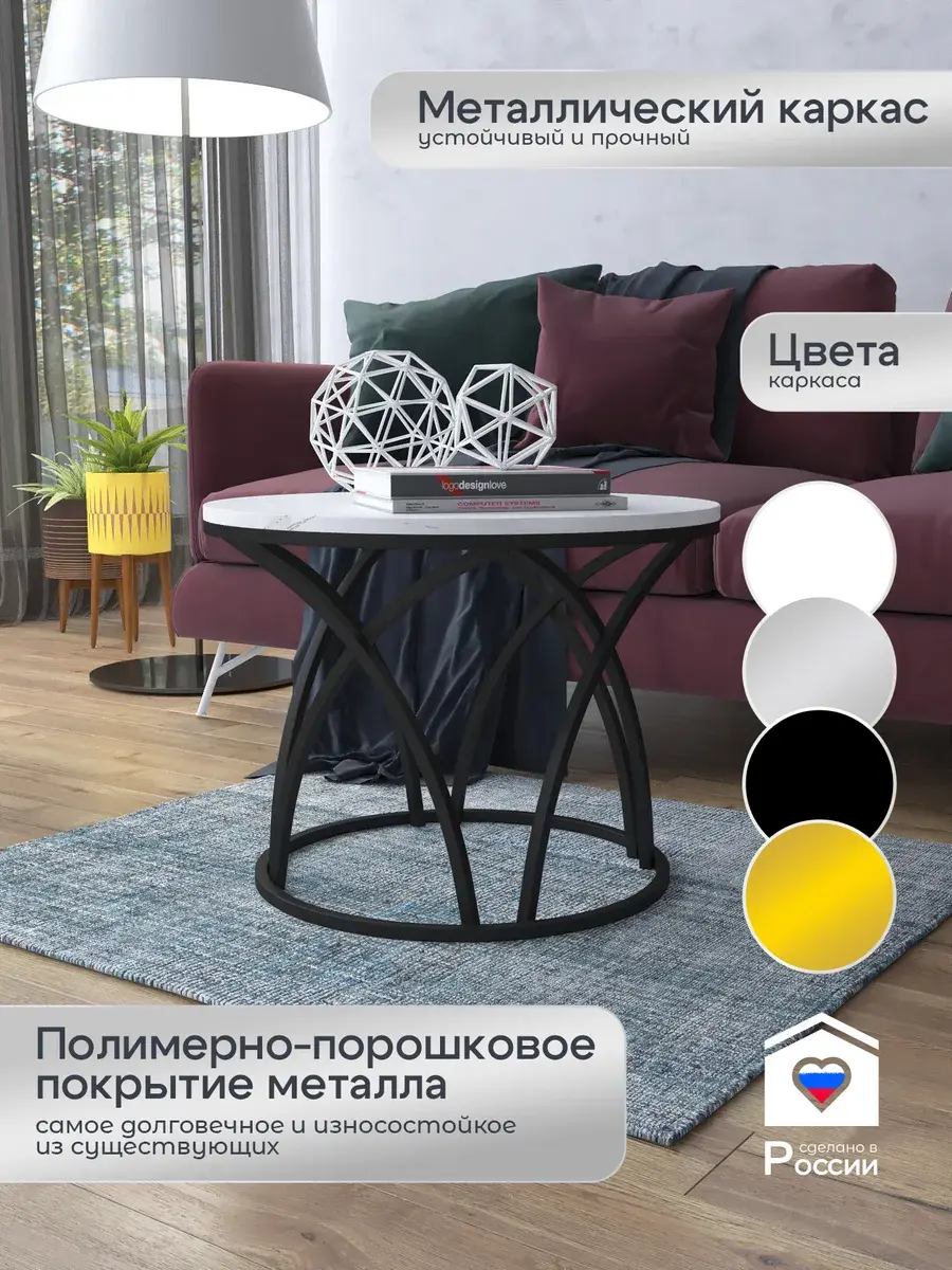 Журнальный стол "Тюльпан" — это стильное и функциональное дополнение к вашему интерьеру. Его уникальный дизайн и высокое качество сразу привлекают внимание. Столешница влагостойкая, а основание покрыто прочной полимерно-порошковой краской. Благодаря этому он не только привлекательно выглядит, но и очень практичен. Конструкция столика надёжна, он выдерживает нагрузку на столешницу до 30 кг. Это позволяет разместить на нём различные предметы декора или напитки. Цвет основания: черный, столешницы: мрамор серебро белый глянцевый. Основание выполнено из квадратной профильной трубы 15х15 толщиной 1.2мм Этот журнальный столик удобен в использовании. Он не царапает пол и не шатается, обеспечивая дополнительный комфорт при эксплуатации. Производство в России гарантирует высокое качество товара и его соответствие всем стандартам. Кроме того, столик поставляется уже собранным. Вам не придётся тратить время и силы на его сборку. Просто распакуйте его и наслаждайтесь преимуществами этого прекрасного изделия. Круглый журнальный столик со столешницей под мрамор — это не просто мебель. Это настоящее произведение искусства, которое подчеркнёт ваш вкус и станет главным акцентом в вашем доме. Покупая этот столик, вы получаете не только функциональную мебель, но и предмет декора, который добавит шарма и уюта в ваше пространство. Не упустите возможность купить этот уникальный журнальный столик и создать уютный уголок в вашем доме, который будет радовать вас каждый день.