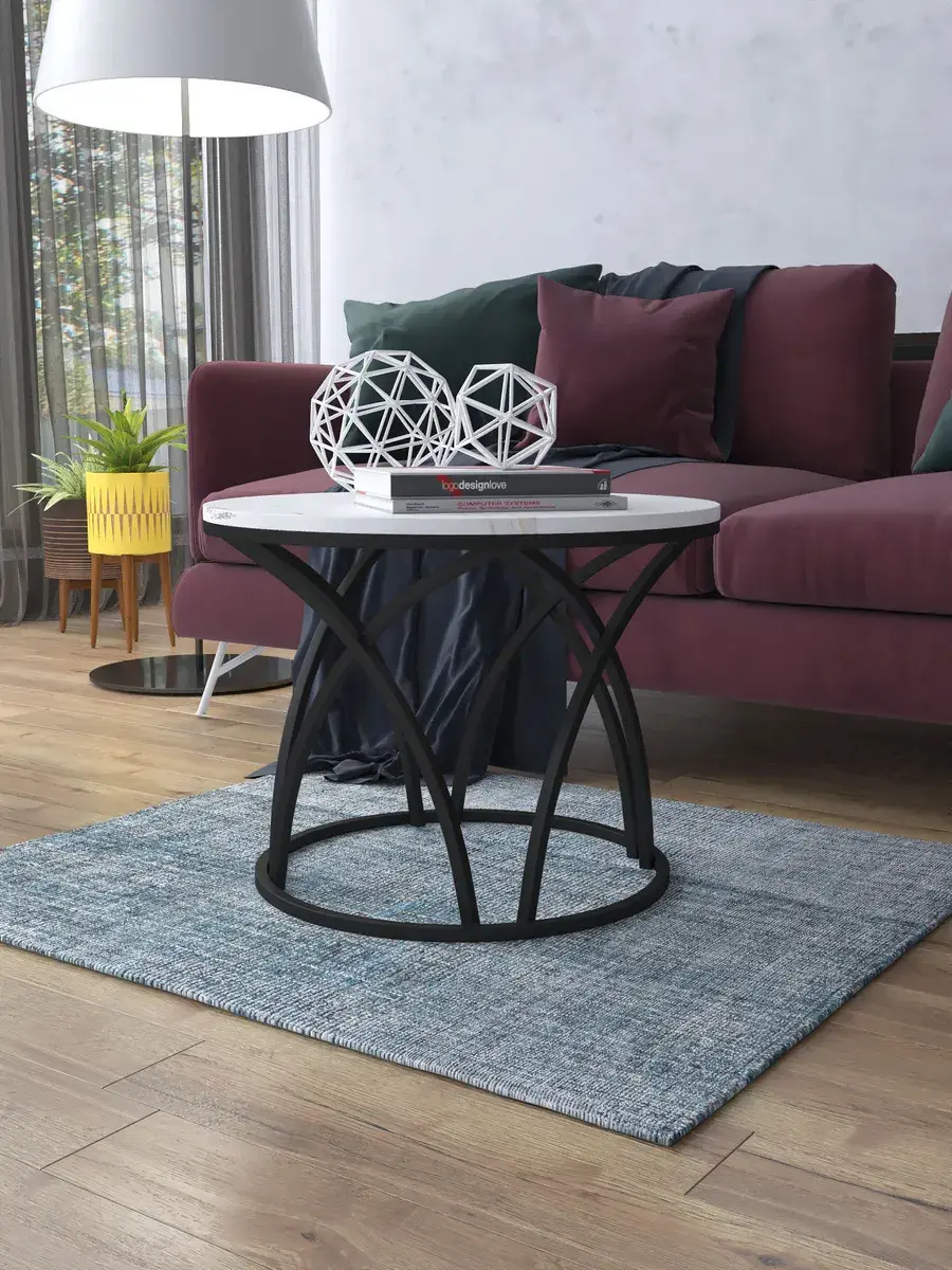 Журнальный стол "Тюльпан" — это стильное и функциональное дополнение к вашему интерьеру. Его уникальный дизайн и высокое качество сразу привлекают внимание. Столешница влагостойкая, а основание покрыто прочной полимерно-порошковой краской. Благодаря этому он не только привлекательно выглядит, но и очень практичен. Конструкция столика надёжна, он выдерживает нагрузку на столешницу до 30 кг. Это позволяет разместить на нём различные предметы декора или напитки. Цвет основания: черный, столешницы: мрамор золото белый глянцевый. Основание выполнено из квадратной профильной трубы 15х15 толщиной 1.2мм Этот журнальный столик удобен в использовании. Он не царапает пол и не шатается, обеспечивая дополнительный комфорт при эксплуатации. Производство в России гарантирует высокое качество товара и его соответствие всем стандартам. Кроме того, столик поставляется уже собранным. Вам не придётся тратить время и силы на его сборку. Просто распакуйте его и наслаждайтесь преимуществами этого прекрасного изделия. Круглый журнальный столик со столешницей под мрамор — это не просто мебель. Это настоящее произведение искусства, которое подчеркнёт ваш вкус и станет главным акцентом в вашем доме. Покупая этот столик, вы получаете не только функциональную мебель, но и предмет декора, который добавит шарма и уюта в ваше пространство. Не упустите возможность купить этот уникальный журнальный столик и создать уютный уголок в вашем доме, который будет радовать вас каждый день.