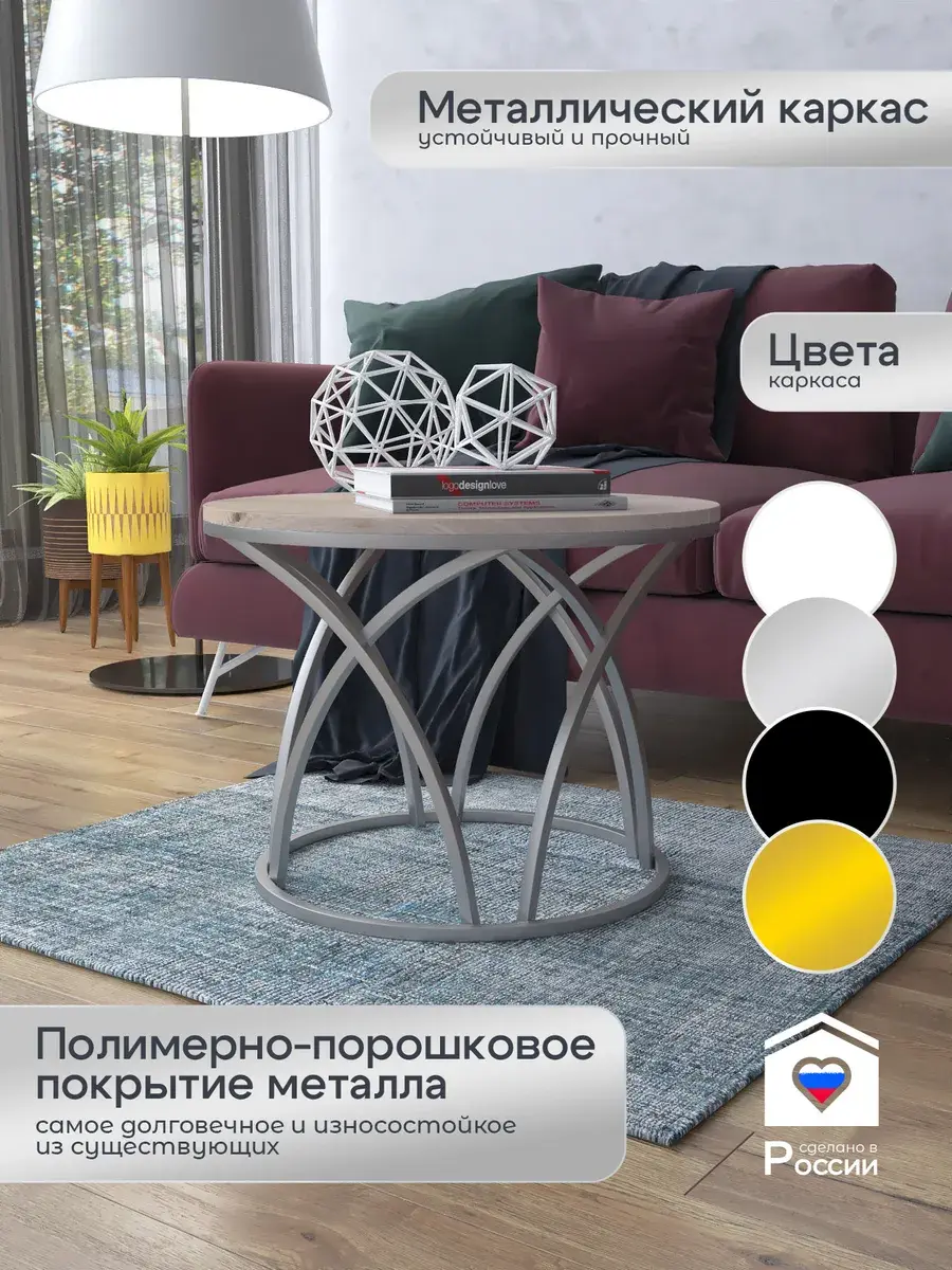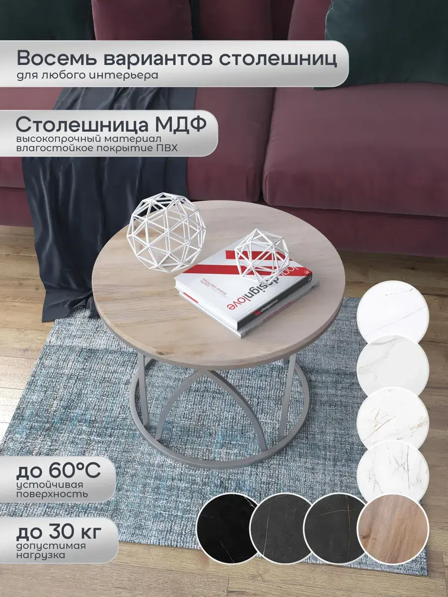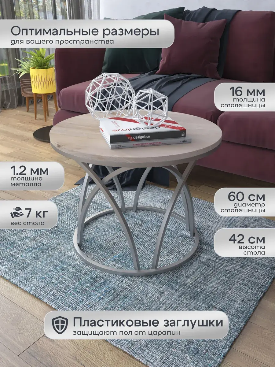 Журнальный стол "Тюльпан" — это стильное и функциональное дополнение к вашему интерьеру. Его уникальный дизайн и высокое качество сразу привлекают внимание. Столешница влагостойкая, а основание покрыто прочной полимерно-порошковой краской. Благодаря этому он не только привлекательно выглядит, но и очень практичен. Конструкция столика надёжна, он выдерживает нагрузку на столешницу до 30 кг. Это позволяет разместить на нём различные предметы декора или напитки. Цвет основания: серебро, столешницы: дуб натуральный. Основание выполнено из квадратной профильной трубы 15х15 толщиной 1.2мм Этот журнальный столик удобен в использовании. Он не царапает пол и не шатается, обеспечивая дополнительный комфорт при эксплуатации. Производство в России гарантирует высокое качество товара и его соответствие всем стандартам. Кроме того, столик поставляется уже собранным. Вам не придётся тратить время и силы на его сборку. Просто распакуйте его и наслаждайтесь преимуществами этого прекрасного изделия. Круглый журнальный столик со столешницей под мрамор — это не просто мебель. Это настоящее произведение искусства, которое подчеркнёт ваш вкус и станет главным акцентом в вашем доме. Покупая этот столик, вы получаете не только функциональную мебель, но и предмет декора, который добавит шарма и уюта в ваше пространство. Не упустите возможность купить этот уникальный журнальный столик и создать уютный уголок в вашем доме, который будет радовать вас каждый день.