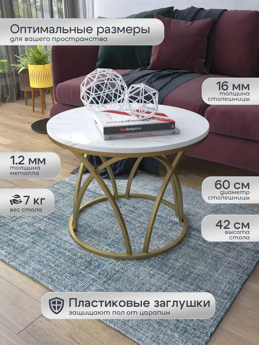 Журнальный стол "Тюльпан" — это стильное и функциональное дополнение к вашему интерьеру. Его уникальный дизайн и высокое качество сразу привлекают внимание. Столешница влагостойкая, а основание покрыто прочной полимерно-порошковой краской. Благодаря этому он не только привлекательно выглядит, но и очень практичен. Конструкция столика надёжна, он выдерживает нагрузку на столешницу до 30 кг. Это позволяет разместить на нём различные предметы декора или напитки. Цвет основания: золото, столешницы: мрамор серебро белый глянцевый. Основание выполнено из квадратной профильной трубы 15х15 толщиной 1.2мм Этот журнальный столик удобен в использовании. Он не царапает пол и не шатается, обеспечивая дополнительный комфорт при эксплуатации. Производство в России гарантирует высокое качество товара и его соответствие всем стандартам. Кроме того, столик поставляется уже собранным. Вам не придётся тратить время и силы на его сборку. Просто распакуйте его и наслаждайтесь преимуществами этого прекрасного изделия. Круглый журнальный столик со столешницей под мрамор — это не просто мебель. Это настоящее произведение искусства, которое подчеркнёт ваш вкус и станет главным акцентом в вашем доме. Покупая этот столик, вы получаете не только функциональную мебель, но и предмет декора, который добавит шарма и уюта в ваше пространство. Не упустите возможность купить этот уникальный журнальный столик и создать уютный уголок в вашем доме, который будет радовать вас каждый день.