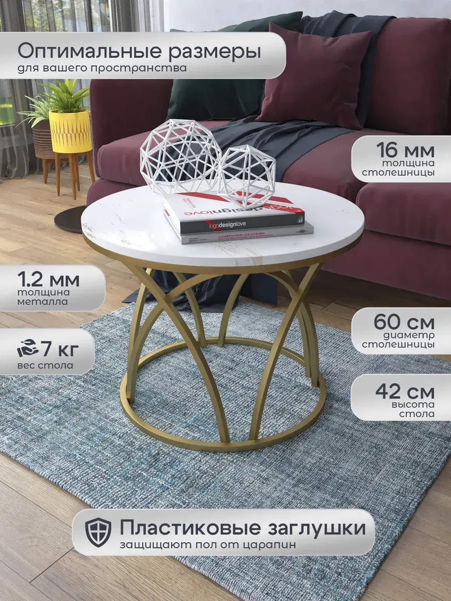 Журнальный стол "Тюльпан" — это стильное и функциональное дополнение к вашему интерьеру. Его уникальный дизайн и высокое качество сразу привлекают внимание. Столешница влагостойкая, а основание покрыто прочной полимерно-порошковой краской. Благодаря этому он не только привлекательно выглядит, но и очень практичен. Конструкция столика надёжна, он выдерживает нагрузку на столешницу до 30 кг. Это позволяет разместить на нём различные предметы декора или напитки. Цвет основания: золото, столешницы: мрамор золото белый глянцевый. Основание выполнено из квадратной профильной трубы 15х15 толщиной 1.2мм Этот журнальный столик удобен в использовании. Он не царапает пол и не шатается, обеспечивая дополнительный комфорт при эксплуатации. Производство в России гарантирует высокое качество товара и его соответствие всем стандартам. Кроме того, столик поставляется уже собранным. Вам не придётся тратить время и силы на его сборку. Просто распакуйте его и наслаждайтесь преимуществами этого прекрасного изделия. Круглый журнальный столик со столешницей под мрамор — это не просто мебель. Это настоящее произведение искусства, которое подчеркнёт ваш вкус и станет главным акцентом в вашем доме. Покупая этот столик, вы получаете не только функциональную мебель, но и предмет декора, который добавит шарма и уюта в ваше пространство. Не упустите возможность купить этот уникальный журнальный столик и создать уютный уголок в вашем доме, который будет радовать вас каждый день.
