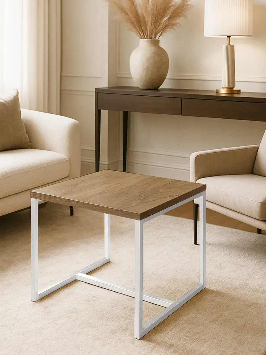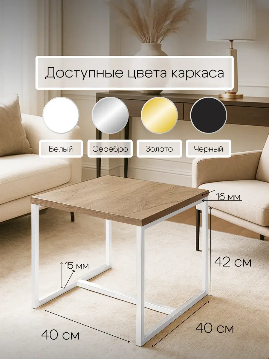 Современный куб-стол с надежным каркасом из металла станет идеальным решением для квартиры, кабинета и загородного дома. Минималистичный дизайн гармонично впишется в любое пространство — от гостиной до рабочего места, от спальни до веранды. Небольшие габариты и надежная конструкция делают изделие многофункциональным: подойдет как журнальный, так и прикроватный вариант, а также как подставка для растений, компьютера или аксессуаров. Прочный металлический каркас обеспечивает долговечность и надежность на долгие годы. Поверхность устойчива к царапинам и легко очищается от загрязнений. Быстрая сборка займет всего 10 минут благодаря понятной схеме — достаточно закрепить верхнюю часть 4 саморезами и соединить каркас 2 винтами. Универсальность предмета дает возможность применения в квартире, творческом пространстве, на загородном участке, в кафе, образовательных и коммерческих помещениях. Благодаря небольшим габаритам мебель легко перемещается по дому и быстро находит применение в любой обстановке. Стол отлично подойдет как журнальный в гостиной или релакс-зоне для размещения чашек, книг и журналов. В спальне он станет удобной прикроватной тумбой для лампы, телефона и личных вещей. Мебель можно применять как подставку для растений, создавая уютные зеленые уголки в интерьере. Компьютер, принтер или другие устройства найдут свое применение на устойчивой поверхности. В рабочих помещениях куб станет практичным решением для переговорных и холлов ожидания. Кафе и рестораны оценят его как стильный кофейный вариант для посетителей. На веранде или в саду мебель создаст комфортную атмосферу для отдыха и чаепития. Образовательные учреждения смогут применять изделие как дополнительный стол для занятий и творчества. Куб-стол сочетает в себе стиль, функциональность и долговечность, становясь незаменимым помощником в организации любого пространства