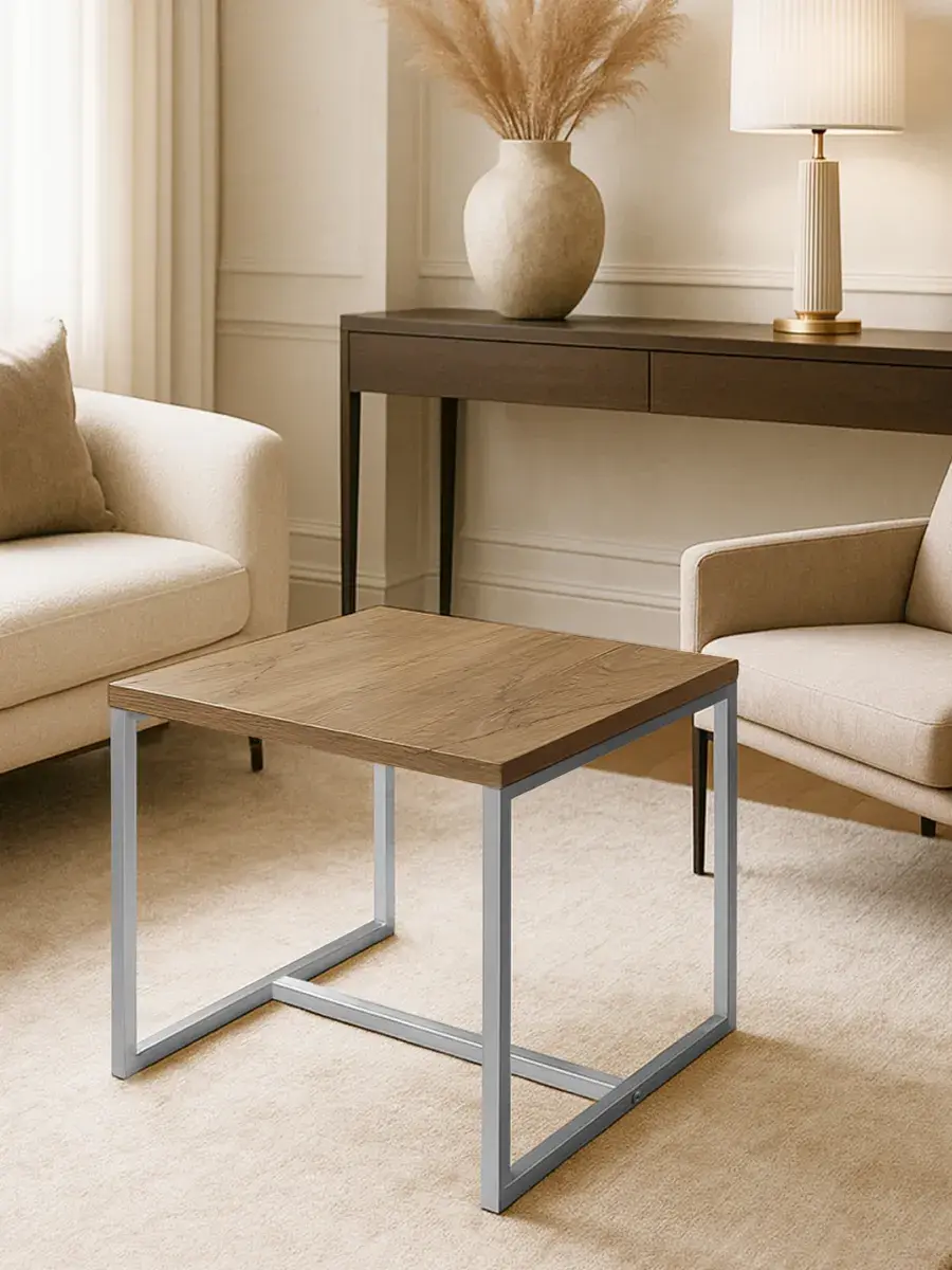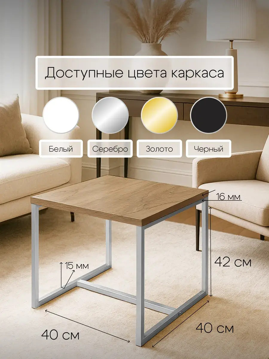 Современный куб-стол с надежным каркасом из металла станет идеальным решением для квартиры, кабинета и загородного дома. Минималистичный дизайн гармонично впишется в любое пространство — от гостиной до рабочего места, от спальни до веранды. Небольшие габариты и надежная конструкция делают изделие многофункциональным: подойдет как журнальный, так и прикроватный вариант, а также как подставка для растений, компьютера или аксессуаров. Прочный металлический каркас обеспечивает долговечность и надежность на долгие годы. Поверхность устойчива к царапинам и легко очищается от загрязнений. Быстрая сборка займет всего 10 минут благодаря понятной схеме — достаточно закрепить верхнюю часть 4 саморезами и соединить каркас 2 винтами. Универсальность предмета дает возможность применения в квартире, творческом пространстве, на загородном участке, в кафе, образовательных и коммерческих помещениях. Благодаря небольшим габаритам мебель легко перемещается по дому и быстро находит применение в любой обстановке. Стол отлично подойдет как журнальный в гостиной или релакс-зоне для размещения чашек, книг и журналов. В спальне он станет удобной прикроватной тумбой для лампы, телефона и личных вещей. Мебель можно применять как подставку для растений, создавая уютные зеленые уголки в интерьере. Компьютер, принтер или другие устройства найдут свое применение на устойчивой поверхности. В рабочих помещениях куб станет практичным решением для переговорных и холлов ожидания. Кафе и рестораны оценят его как стильный кофейный вариант для посетителей. На веранде или в саду мебель создаст комфортную атмосферу для отдыха и чаепития. Образовательные учреждения смогут применять изделие как дополнительный стол для занятий и творчества. Куб-стол сочетает в себе стиль, функциональность и долговечность, становясь незаменимым помощником в организации любого пространства