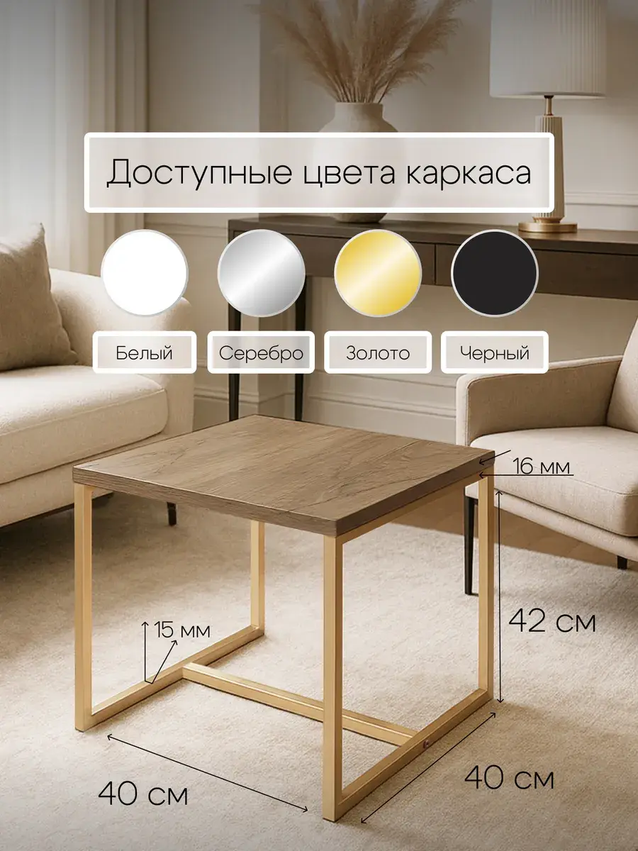 Современный куб-стол с надежным каркасом из металла станет идеальным решением для квартиры, кабинета и загородного дома. Минималистичный дизайн гармонично впишется в любое пространство — от гостиной до рабочего места, от спальни до веранды. Небольшие габариты и надежная конструкция делают изделие многофункциональным: подойдет как журнальный, так и прикроватный вариант, а также как подставка для растений, компьютера или аксессуаров. Прочный металлический каркас обеспечивает долговечность и надежность на долгие годы. Поверхность устойчива к царапинам и легко очищается от загрязнений. Быстрая сборка займет всего 10 минут благодаря понятной схеме — достаточно закрепить верхнюю часть 4 саморезами и соединить каркас 2 винтами. Универсальность предмета дает возможность применения в квартире, творческом пространстве, на загородном участке, в кафе, образовательных и коммерческих помещениях. Благодаря небольшим габаритам мебель легко перемещается по дому и быстро находит применение в любой обстановке. Стол отлично подойдет как журнальный в гостиной или релакс-зоне для размещения чашек, книг и журналов. В спальне он станет удобной прикроватной тумбой для лампы, телефона и личных вещей. Мебель можно применять как подставку для растений, создавая уютные зеленые уголки в интерьере. Компьютер, принтер или другие устройства найдут свое применение на устойчивой поверхности. В рабочих помещениях куб станет практичным решением для переговорных и холлов ожидания. Кафе и рестораны оценят его как стильный кофейный вариант для посетителей. На веранде или в саду мебель создаст комфортную атмосферу для отдыха и чаепития. Образовательные учреждения смогут применять изделие как дополнительный стол для занятий и творчества. Куб-стол сочетает в себе стиль, функциональность и долговечность, становясь незаменимым помощником в организации любого пространства