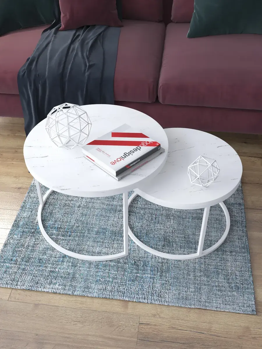 Пара журнальных столов "Акцент" — это стильное и функциональное дополнение к вашему интерьеру. Его уникальный дизайн и высокое качество сразу привлекают внимание. Столешницы влагостойкие, а основания покрыты прочной полимерно-порошковой краской. Благодаря этому они не только привлекательно выглядят, но и очень практичны. Конструкция столиков надёжна, они выдерживают нагрузку на столешницу до 30 кг. Это позволяет разместить на них различные предметы декора или напитки. Высота большего стола 41см, диаметр - 60см; высота малого столика - 34см, диаметр - 50см. Цвет основания: белый, столешницы: мрамор серебро белый матовый. Основание выполнено из квадратной профильной трубы 15х15 толщиной 1.2мм Эти журнальные столики удобны в использовании. Они не царапают пол и не шатаются, обеспечивая дополнительный комфорт при эксплуатации. Производство в России гарантирует высокое качество товара и его соответствие всем стандартам. Кроме того, столики поставляются уже собранными. Вам не придётся тратить время и силы на их сборку. Просто распакуйте и наслаждайтесь преимуществами этих прекрасных изделий. Круглые журнальные столики со столешницей под мрамор — это не просто мебель. Это настоящее произведение искусства, которое подчеркнёт ваш вкус и станет главным акцентом в вашем доме. Покупая эти столики, вы получаете не только функциональную мебель, но и предмет декора, который добавит шарма и уюта в ваше пространство. Не упустите возможность купить эти уникальные журнальные столики и создать уютный уголок в вашем доме,на радость каждый день.
