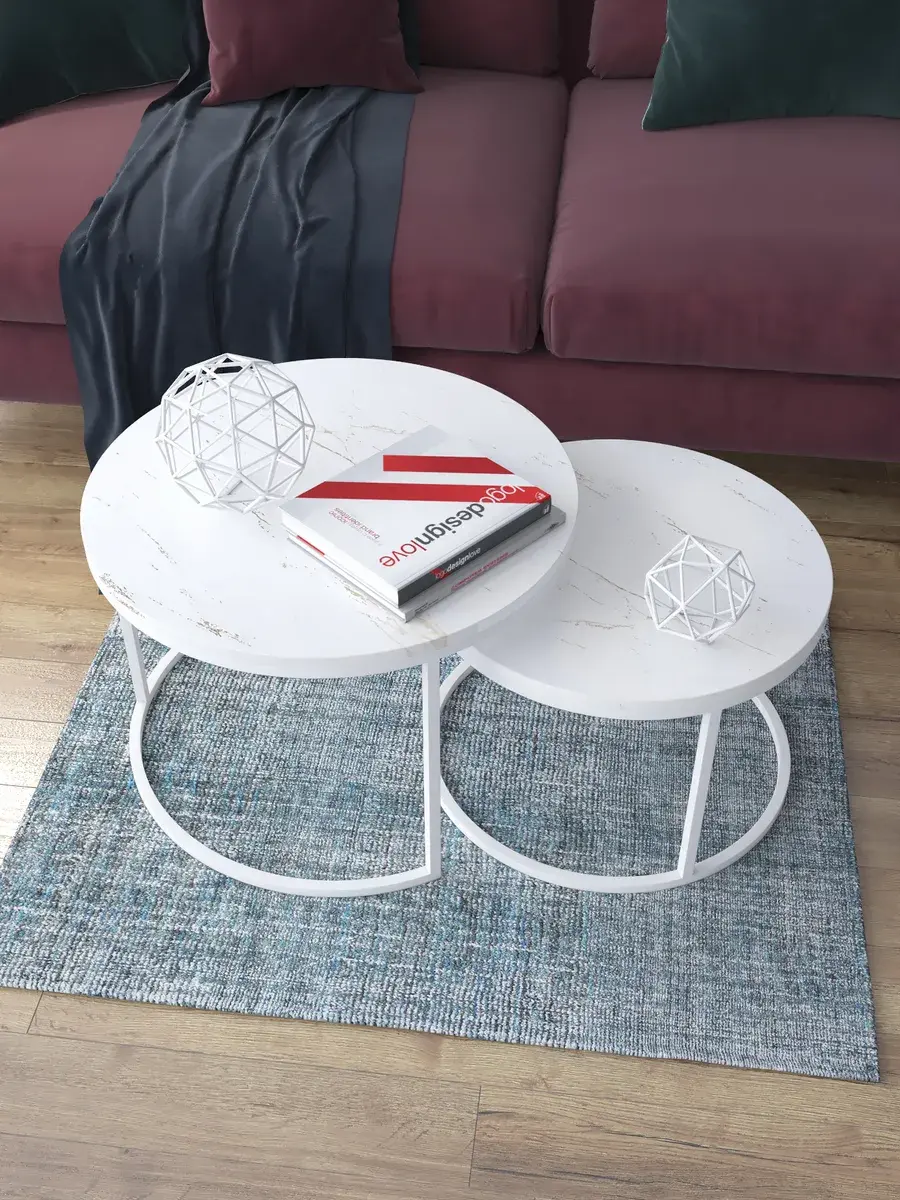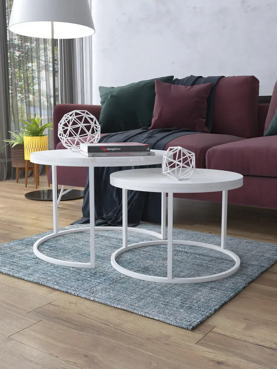 Пара журнальных столов "Акцент" — это стильное и функциональное дополнение к вашему интерьеру. Его уникальный дизайн и высокое качество сразу привлекают внимание. Столешницы влагостойкие, а основания покрыты прочной полимерно-порошковой краской. Благодаря этому они не только привлекательно выглядят, но и очень практичны. Конструкция столиков надёжна, они выдерживают нагрузку на столешницу до 30 кг. Это позволяет разместить на них различные предметы декора или напитки. Высота большего стола 41см, диаметр - 60см; высота малого столика - 34см, диаметр - 50см. Цвет основания: белый, столешницы: мрамор золото белый глянцевый. Основание выполнено из квадратной профильной трубы 15х15 толщиной 1.2мм Эти журнальные столики удобны в использовании. Они не царапают пол и не шатаются, обеспечивая дополнительный комфорт при эксплуатации. Производство в России гарантирует высокое качество товара и его соответствие всем стандартам. Кроме того, столики поставляются уже собранными. Вам не придётся тратить время и силы на их сборку. Просто распакуйте и наслаждайтесь преимуществами этих прекрасных изделий. Круглые журнальные столики со столешницей под мрамор — это не просто мебель. Это настоящее произведение искусства, которое подчеркнёт ваш вкус и станет главным акцентом в вашем доме. Покупая эти столики, вы получаете не только функциональную мебель, но и предмет декора, который добавит шарма и уюта в ваше пространство. Не упустите возможность купить эти уникальные журнальные столики и создать уютный уголок в вашем доме,на радость каждый день.