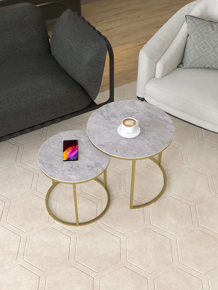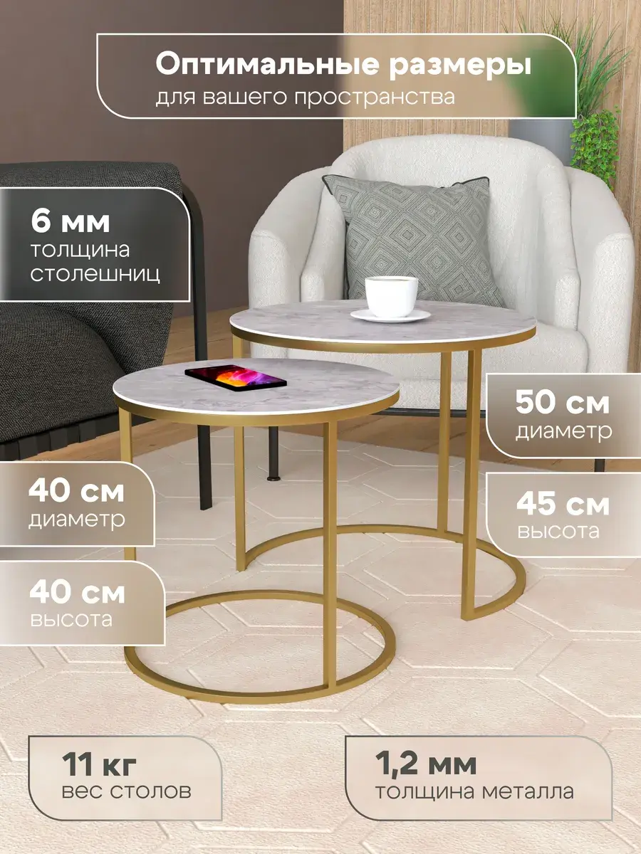 Насладитесь безупречным дизайном и высочайшим качеством этого роскошного круглый журнальный столик. Этот стильный комплект включает два стола: большой диаметром 50 см и высотой 45 см, а также малый диаметром 40 см и высотой 40 см. Этот кофейный столик станет центральным элементом вашего интерьера. Высококачественные материалы гарантируют долговечность. Этот стол круглый по форме идеально подходит для создания гармоничного пространства. Журнальный столик круглый выполнен в лучших традициях современного дизайна. Вы можете выбрать из 24 вариантов цветовых решений, что позволит идеально вписать столики в ваш интерьер. Инвестируйте в красоту своего дома - приобретите этот изысканный комплект!