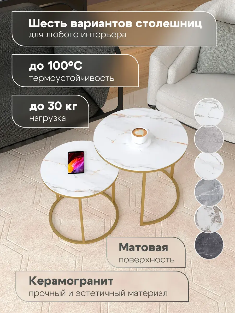 Воплотите свои дизайнерские идеи в жизнь с помощью этого стильного круглый журнальный столик. Этот стильный комплект включает два стола: большой диаметром 50 см и высотой 45 см, а также малый диаметром 40 см и высотой 40 см. Универсальный приставной столик станет идеальным дополнением к любому дивану или креслу. Современный стиль подчеркивает вкус владельца. Журнальный столик круглый выполнен в лучших традициях современного дизайна. Этот стол круглый по форме идеально подходит для создания гармоничного пространства. Вы можете выбрать из 24 вариантов цветовых решений, что позволит идеально вписать столики в ваш интерьер. Закажите сегодня и получите не просто мебель, а произведение искусства!