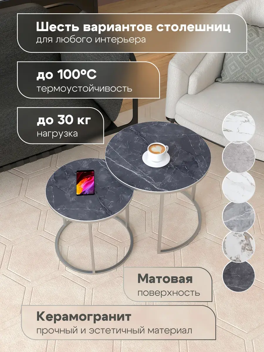 Подарите своему дому частичку вдохновения с этим великолепным круглый журнальный столик. Этот стильный комплект включает два стола: большой диаметром 50 см и высотой 45 см, а также малый диаметром 40 см и высотой 40 см. Этот стол журнальный может использоваться как столик прикроватный, добавляя функциональность в спальню. Высококачественные материалы гарантируют долговечность. Столик журнальный выполнен в лучших традициях современного дизайна. Как кофейный столик, он создаст уютную атмосферу для утреннего кофе или вечернего чая. Вы можете выбрать из 24 вариантов цветовых решений, что позволит идеально вписать столики в ваш интерьер. Инвестируйте в красоту своего дома - приобретите этот изысканный комплект!