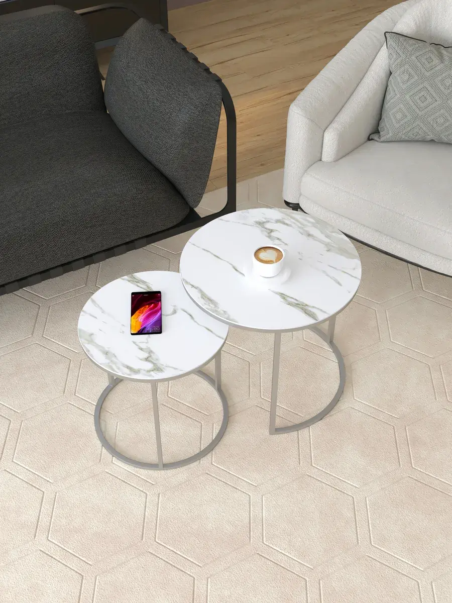 Создайте идеальную гармонию в интерьере с помощью этого прекрасного круглый журнальный столик. Этот стильный комплект включает два стола: большой диаметром 50 см и высотой 45 см, а также малый диаметром 40 см и высотой 40 см. Этот стол круглый может использоваться как столик прикроватный, добавляя функциональность в спальню. Современный стиль подчеркивает вкус владельца. Прикроватный столик выполнен в лучших традициях современного дизайна. Приставной столик выполнен в лучших традициях современного дизайна. Вы можете выбрать из 24 вариантов цветовых решений, что позволит идеально вписать столики в ваш интерьер. Закажите сегодня и получите не просто мебель, а произведение искусства!