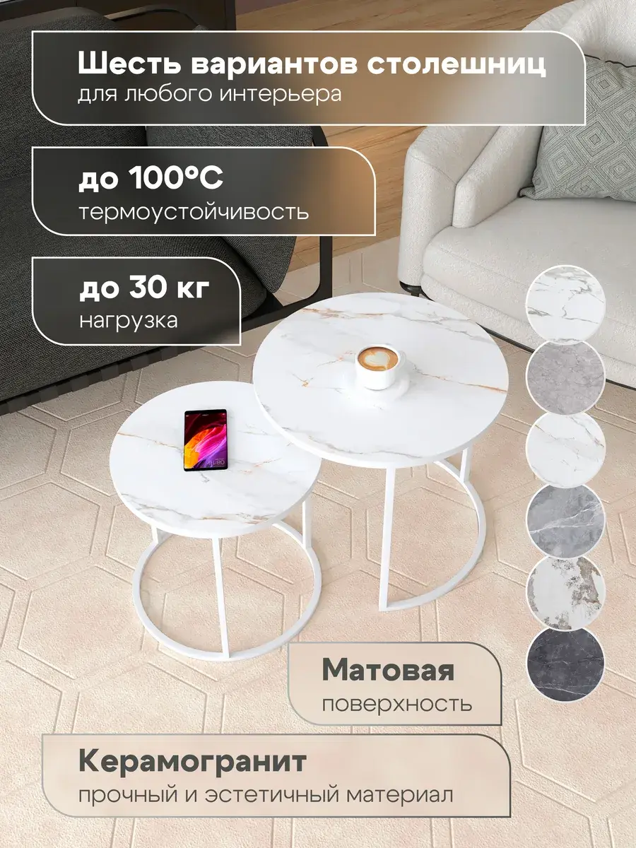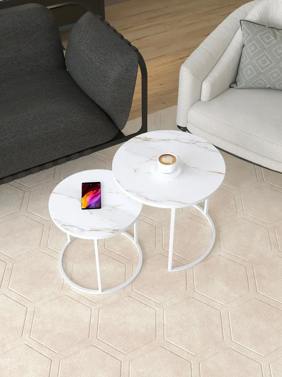 Добавьте изысканности в каждый уголок вашего жилища благодаря этому роскошному круглый журнальный столик. Этот стильный комплект включает два стола: большой диаметром 50 см и высотой 45 см, а также малый диаметром 40 см и высотой 40 см. Этот приставной столик может использоваться как столик прикроватный, добавляя функциональность в спальню. Компактные размеры идеально вписываются в любое пространство. Как кофейный столик, он создаст уютную атмосферу для утреннего кофе или вечернего чая. Стол журнальный выполнен в лучших традициях современного дизайна. Вы можете выбрать из 24 вариантов цветовых решений, что позволит идеально вписать столики в ваш интерьер. Приобретите этот элегантный комплект и наслаждайтесь его красотой долгие годы!