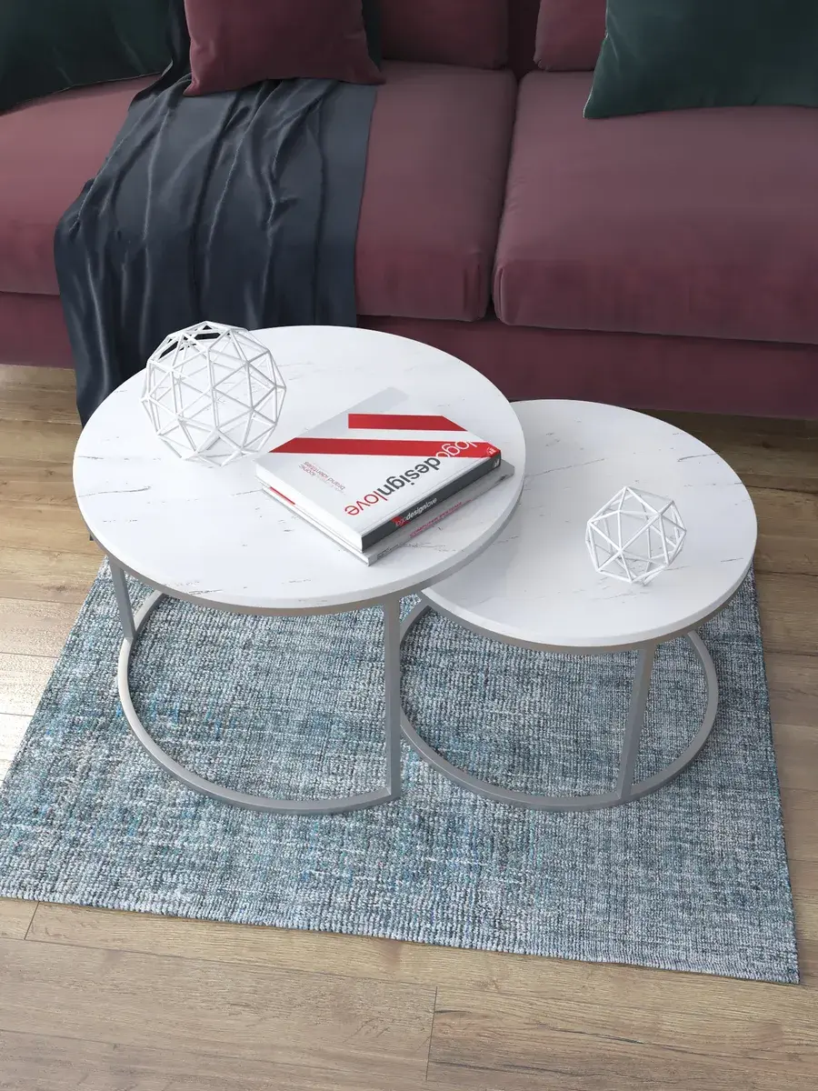 Пара журнальных столов "Акцент" — это стильное и функциональное дополнение к вашему интерьеру. Его уникальный дизайн и высокое качество сразу привлекают внимание. Столешницы влагостойкие, а основания покрыты прочной полимерно-порошковой краской. Благодаря этому они не только привлекательно выглядят, но и очень практичны. Конструкция столиков надёжна, они выдерживают нагрузку на столешницу до 30 кг. Это позволяет разместить на них различные предметы декора или напитки. Высота большего стола 41см, диаметр - 60см; высота малого столика - 34см, диаметр - 50см. Цвет основания: серебро, столешницы: мрамор серебро белый глянцевый. Основание выполнено из квадратной профильной трубы 15х15 толщиной 1.2мм Эти журнальные столики удобны в использовании. Они не царапают пол и не шатаются, обеспечивая дополнительный комфорт при эксплуатации. Производство в России гарантирует высокое качество товара и его соответствие всем стандартам. Кроме того, столики поставляются уже собранными. Вам не придётся тратить время и силы на их сборку. Просто распакуйте и наслаждайтесь преимуществами этих прекрасных изделий. Круглые журнальные столики со столешницей под мрамор — это не просто мебель. Это настоящее произведение искусства, которое подчеркнёт ваш вкус и станет главным акцентом в вашем доме. Покупая эти столики, вы получаете не только функциональную мебель, но и предмет декора, который добавит шарма и уюта в ваше пространство. Не упустите возможность купить эти уникальные журнальные столики и создать уютный уголок в вашем доме,на радость каждый день.