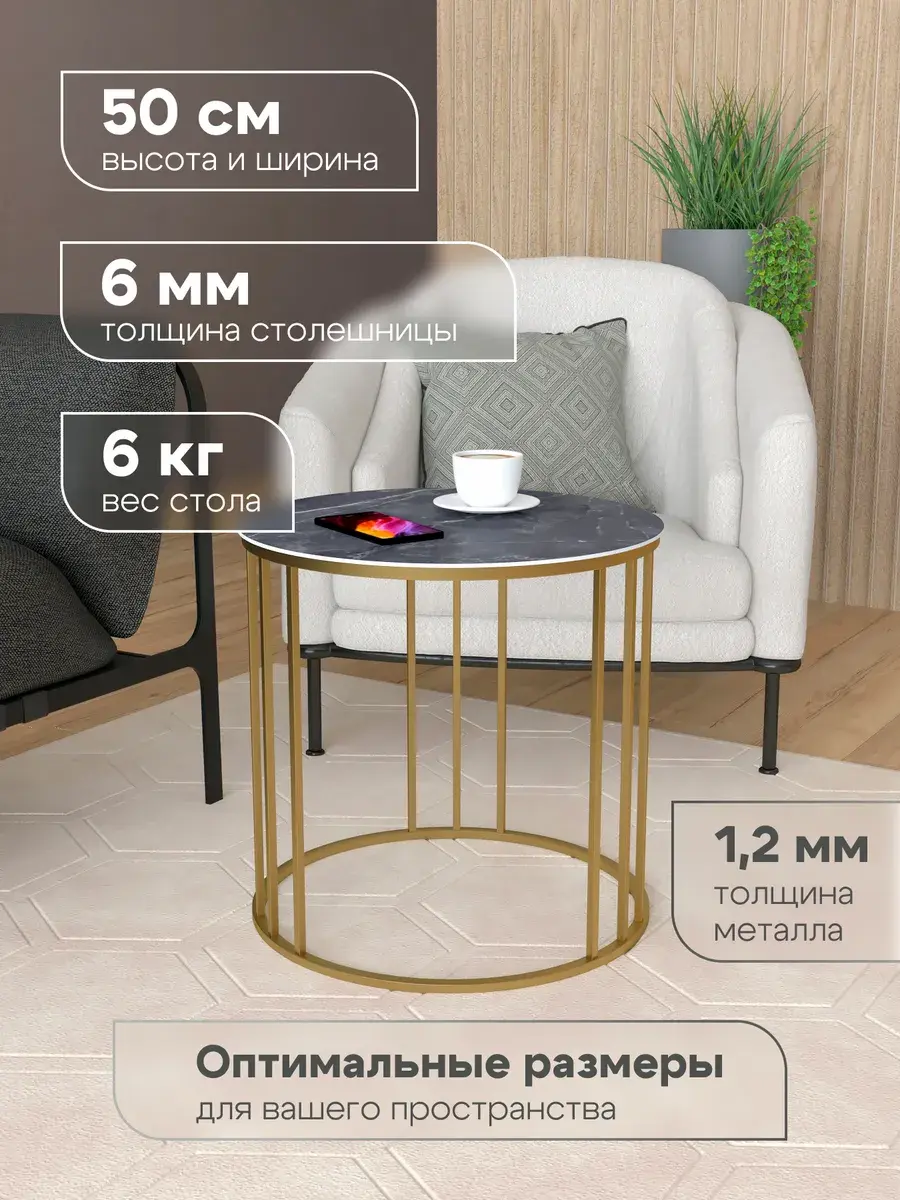 Журнальный столик "Трио малый" от бренда "Акцент интерьера" станет стильным и функциональным дополнением вашего интерьера. Круглая столешница из прочного и износостойкого керамогранита диаметром 50 см идеально подходит для размещения чашек, книг или декоративных элементов. Благодаря лаконичному дизайну в стиле лофт, классика или модерн, столик гармонично впишется в гостиную, спальню или даже на балкон. "Трио малый" изготовлен из качественных материалов: металлический корпус и ножки из полиуретана обеспечивают устойчивость и долговечность.