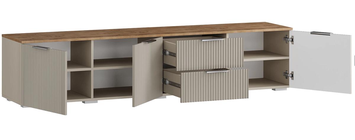 Мебель напрямую от фабрики. Можем менять габариты, цвет, варианты обивки и фасадов. ТВ-тумба Салерно 1 (МДФ) отличается высоким качеством материалов и сборки, что гарантирует долговечность и надежность. Современный дизайн гармонично впишется в любой интерьер, а продуманная эргономика обеспечит максимальный комфорт. Преимущества ТВ-тумбы Салерно 1 (МДФ) Высокое качество и долговечность Современный и стильный дизайн Продуманная эргономика для максимального комфорта Простота в уходе и обслуживании ТВ-тумба Салерно 1 (МДФ) - идеальное решение для тех, кто ценит качество, комфорт и красоту. Весь ассортимент мебели от фабрики производится по самым высоким стандартам с использованием передовых технологий. Мы гарантируем безупречное качество каждого изделия и полное соответствие всем необходимым нормам и требованиям. Характеристики ТВ-тумбы Салерно 1 (МДФ) Исполнение Материал фасадов: SF-022 Сантьяго Материал корпуса: ЛДСП Кашемир 5981 BS / Дуб Золотистый U1148 / Оргалит Габариты (Ширина*Глубина*Высота) 197*42*43 см Гарантия: 24 месяца Обновлено:22.02.2026