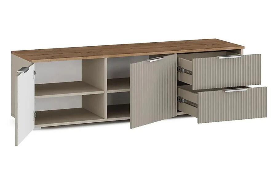 Мебель напрямую от фабрики. Можем менять габариты, цвет, варианты обивки и фасадов. ТВ-тумба Салерно-2 (МДФ) отличается высоким качеством материалов и сборки, что гарантирует долговечность и надежность. Современный дизайн гармонично впишется в любой интерьер, а продуманная эргономика обеспечит максимальный комфорт. Преимущества ТВ-тумбы Салерно-2 (МДФ) Высокое качество и долговечность Современный и стильный дизайн Продуманная эргономика для максимального комфорта Простота в уходе и обслуживании ТВ-тумба Салерно-2 (МДФ) - идеальное решение для тех, кто ценит качество, комфорт и красоту. Весь ассортимент мебели от фабрики производится по самым высоким стандартам с использованием передовых технологий. Мы гарантируем безупречное качество каждого изделия и полное соответствие всем необходимым нормам и требованиям. Характеристики ТВ-тумбы Салерно-2 (МДФ) Исполнение Материал фасадов: SF-022 Сантьяго Материал корпуса: ЛДСП Кашемир 5981 BS / Дуб Золотистый U1148 / Оргалит Габариты (Ширина*Глубина*Высота) ** см Гарантия: 24 месяца Обновлено:22.02.2026