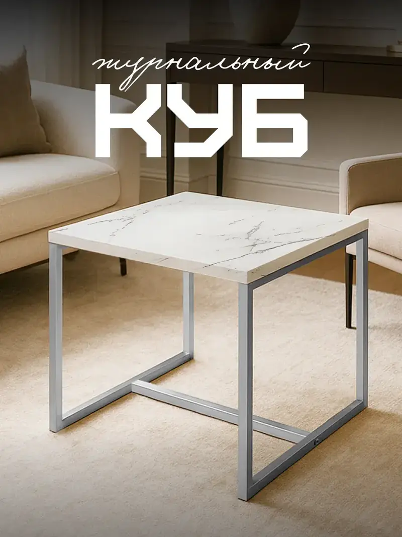 Современный куб-стол с надежным каркасом из металла станет идеальным решением дл...