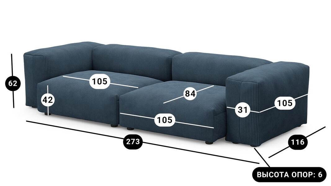 Мебель напрямую от фабрики. Можем менять габариты, цвет, варианты обивки и фасадов. Диван Фиджи двухсекционный (большой) отличается высоким качеством материалов и сборки, что гарантирует долговечность и надежность. Современный дизайн гармонично впишется в любой интерьер, а продуманная эргономика обеспечит максимальный комфорт. Преимущества дивана Фиджи двухсекционного (большого) Высокое качество и долговечность Современный и стильный дизайн Продуманная эргономика для максимального комфорта Простота в уходе и обслуживании Диван Фиджи двухсекционный (большой) - идеальное решение для тех, кто ценит качество, комфорт и красоту. Весь ассортимент мебели от фабрики производится по самым высоким стандартам с использованием передовых технологий. Мы гарантируем безупречное качество каждого изделия и полное соответствие всем необходимым нормам и требованиям. Жизнь не стоит на месте: все меняется, мы растем, а иногда просто чувствуем, что пришло время снова что-то менять. Наши диванные модули разработаны таким образом, чтобы Вы могли легко дополнять или изменять расположение или заново создавать свой образ (за счет соединителей, которые приобретаются дополнительно). Модульные транформеры Фиджи позволят Вам создать уникальный предмет мебели, отражающий Вашу индивидуальность и стиль жизни. Смешивайте и подбирайте ткани и размеры, а также добавляйте дополнительные модули, чтобы создать свой фирменный диван. Кушетка, на которой можно свернуться калачиком и почитать книгу, диван, на котором можно вздремнуть или большой гостиный гарнитур для всей семьи - наши диванные модули мгновенно позволят Вам почувствовать комфорт. Характеристики дивана Фиджи двухсекционный (большой) Функциональность Диван для отдыха Исполнение Комплектация: 2 пуфа со спинкой 105*84 см, 2 подлокотника 105*31 см Обивочный материал: вельвет Cilium Indigo Опоры: пластик; ППУ 3040 Механизм трансформации Трансформер Нераскладной Габариты (Ширина*Глубина*Высота) 273*116*62 см Гарантия: 18 месяцев Обновлено:22.02.2026