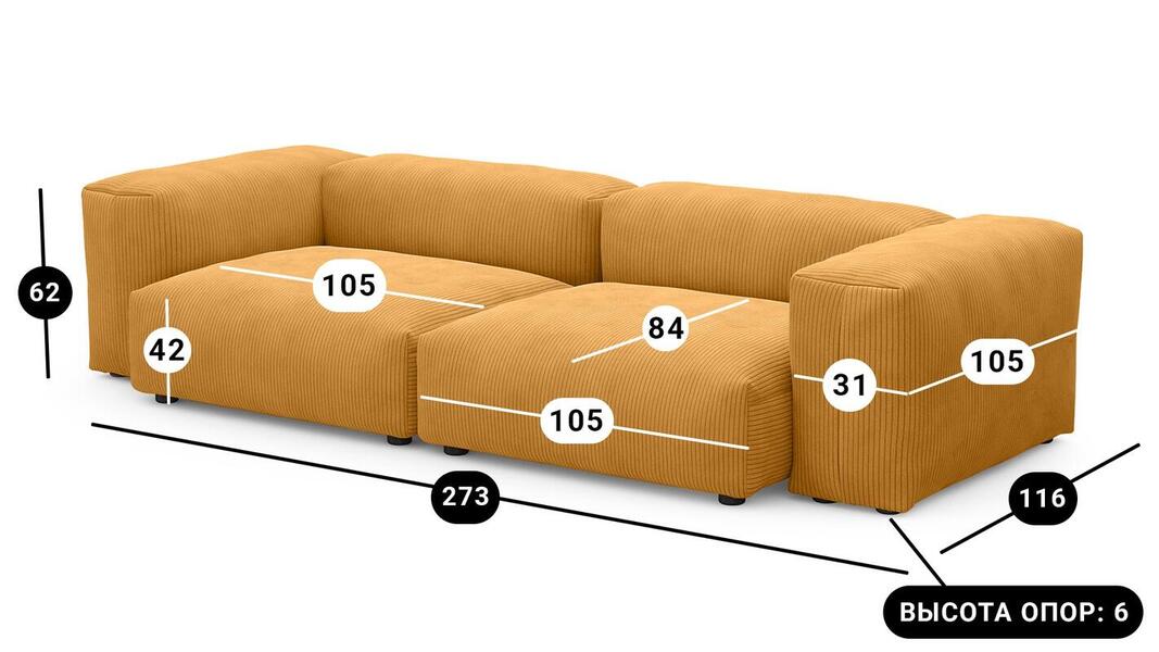 Мебель напрямую от фабрики. Можем менять габариты, цвет, варианты обивки и фасадов. Диван Фиджи двухсекционный (большой) отличается высоким качеством материалов и сборки, что гарантирует долговечность и надежность. Современный дизайн гармонично впишется в любой интерьер, а продуманная эргономика обеспечит максимальный комфорт. Преимущества дивана Фиджи двухсекционного (большого) Высокое качество и долговечность Современный и стильный дизайн Продуманная эргономика для максимального комфорта Простота в уходе и обслуживании Диван Фиджи двухсекционный (большой) - идеальное решение для тех, кто ценит качество, комфорт и красоту. Весь ассортимент мебели от фабрики производится по самым высоким стандартам с использованием передовых технологий. Мы гарантируем безупречное качество каждого изделия и полное соответствие всем необходимым нормам и требованиям. Жизнь не стоит на месте: все меняется, мы растем, а иногда просто чувствуем, что пришло время снова что-то менять. Наши диванные модули разработаны таким образом, чтобы Вы могли легко дополнять или изменять расположение или заново создавать свой образ (за счет соединителей, которые приобретаются дополнительно). Модульные транформеры Фиджи позволят Вам создать уникальный предмет мебели, отражающий Вашу индивидуальность и стиль жизни. Смешивайте и подбирайте ткани и размеры, а также добавляйте дополнительные модули, чтобы создать свой фирменный диван. Кушетка, на которой можно свернуться калачиком и почитать книгу, диван, на котором можно вздремнуть или большой гостиный гарнитур для всей семьи - наши диванные модули мгновенно позволят Вам почувствовать комфорт. Характеристики дивана Фиджи двухсекционный (большой) Функциональность Диван для отдыха Исполнение Комплектация: 2 пуфа со спинкой 105*84 см, 2 подлокотника 105*31 см Обивочный материал: вельвет Cilium Umber Опоры: пластик; ППУ 3040 Механизм трансформации Трансформер Нераскладной Габариты (Ширина*Глубина*Высота) 273*116*62 см Гарантия: 18 месяцев Обновлено:22.02.2026