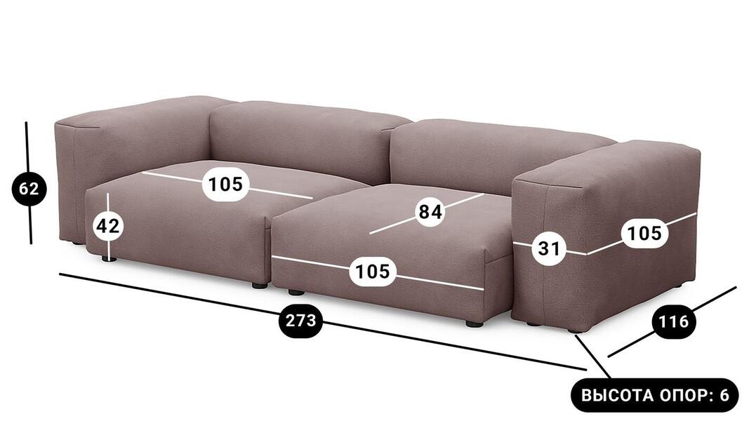Мебель напрямую от фабрики. Можем менять габариты, цвет, варианты обивки и фасадов. Диван Фиджи двухсекционный (большой) отличается высоким качеством материалов и сборки, что гарантирует долговечность и надежность. Современный дизайн гармонично впишется в любой интерьер, а продуманная эргономика обеспечит максимальный комфорт. Преимущества дивана Фиджи двухсекционного (большого) Высокое качество и долговечность Современный и стильный дизайн Продуманная эргономика для максимального комфорта Простота в уходе и обслуживании Диван Фиджи двухсекционный (большой) - идеальное решение для тех, кто ценит качество, комфорт и красоту. Весь ассортимент мебели от фабрики производится по самым высоким стандартам с использованием передовых технологий. Мы гарантируем безупречное качество каждого изделия и полное соответствие всем необходимым нормам и требованиям. Жизнь не стоит на месте: все меняется, мы растем, а иногда просто чувствуем, что пришло время снова что-то менять. Наши диванные модули разработаны таким образом, чтобы Вы могли легко дополнять или изменять расположение или заново создавать свой образ (за счет соединителей, которые приобретаются дополнительно). Модульные транформеры Фиджи позволят Вам создать уникальный предмет мебели, отражающий Вашу индивидуальность и стиль жизни. Смешивайте и подбирайте ткани и размеры, а также добавляйте дополнительные модули, чтобы создать свой фирменный диван. Кушетка, на которой можно свернуться калачиком и почитать книгу, диван, на котором можно вздремнуть или большой гостиный гарнитур для всей семьи - наши диванные модули мгновенно позволят Вам почувствовать комфорт. Характеристики дивана Фиджи двухсекционный (большой) Функциональность Диван для отдыха Исполнение Комплектация: 2 пуфа со спинкой 105*84 см, 2 подлокотника 105*31 см Обивочный материал: Союз М Velutto 37 (велюр) Опоры: пластик; ППУ 3040 Механизм трансформации Трансформер Нераскладной Габариты (Ширина*Глубина*Высота) 273*116*62 см Гарантия: 18 месяцев Обновлено:22.02.2026