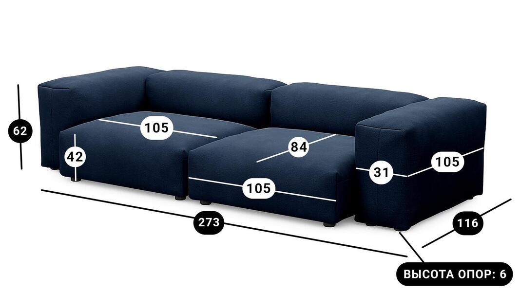 Мебель напрямую от фабрики. Можем менять габариты, цвет, варианты обивки и фасадов. Диван Фиджи двухсекционный (большой) отличается высоким качеством материалов и сборки, что гарантирует долговечность и надежность. Современный дизайн гармонично впишется в любой интерьер, а продуманная эргономика обеспечит максимальный комфорт. Преимущества дивана Фиджи двухсекционного (большого) Высокое качество и долговечность Современный и стильный дизайн Продуманная эргономика для максимального комфорта Простота в уходе и обслуживании Диван Фиджи двухсекционный (большой) - идеальное решение для тех, кто ценит качество, комфорт и красоту. Весь ассортимент мебели от фабрики производится по самым высоким стандартам с использованием передовых технологий. Мы гарантируем безупречное качество каждого изделия и полное соответствие всем необходимым нормам и требованиям. Жизнь не стоит на месте: все меняется, мы растем, а иногда просто чувствуем, что пришло время снова что-то менять. Наши диванные модули разработаны таким образом, чтобы Вы могли легко дополнять или изменять расположение или заново создавать свой образ (за счет соединителей, которые приобретаются дополнительно). Модульные транформеры Фиджи позволят Вам создать уникальный предмет мебели, отражающий Вашу индивидуальность и стиль жизни. Смешивайте и подбирайте ткани и размеры, а также добавляйте дополнительные модули, чтобы создать свой фирменный диван. Кушетка, на которой можно свернуться калачиком и почитать книгу, диван, на котором можно вздремнуть или большой гостиный гарнитур для всей семьи - наши диванные модули мгновенно позволят Вам почувствовать комфорт. Характеристики дивана Фиджи двухсекционный (большой) Функциональность Диван для отдыха Исполнение Комплектация: 2 пуфа со спинкой 105*84 см, 2 подлокотника 105*31 см Обивочный материал: Союз М Velutto 54 (велюр) Опоры: пластик; ППУ 3040 Механизм трансформации Трансформер Нераскладной Габариты (Ширина*Глубина*Высота) 273*116*62 см Гарантия: 18 месяцев Обновлено:22.02.2026