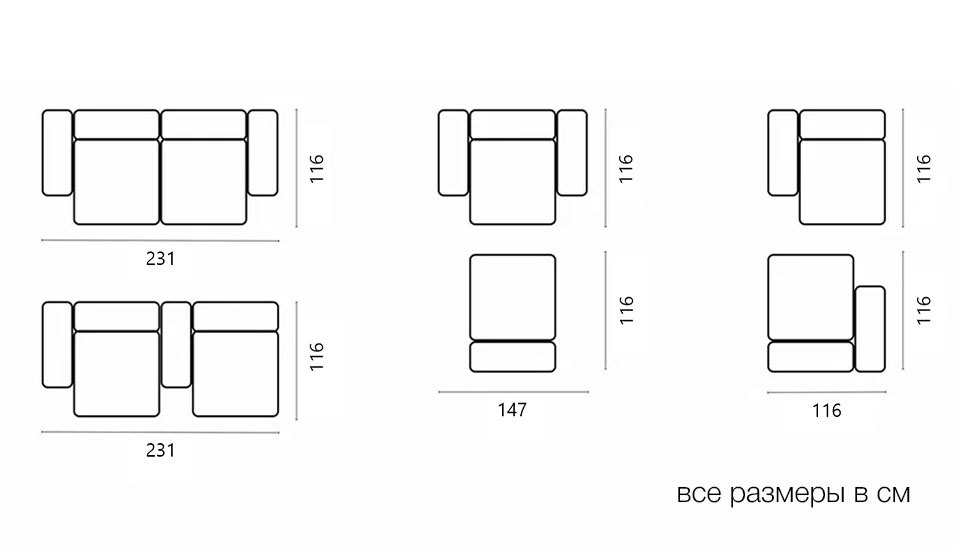 Мебель напрямую от фабрики. Можем менять габариты, цвет, варианты обивки и фасадов. Диван Фиджи двухсекционный (малый) отличается высоким качеством материалов и сборки, что гарантирует долговечность и надежность. Современный дизайн гармонично впишется в любой интерьер, а продуманная эргономика обеспечит максимальный комфорт. Преимущества дивана Фиджи двухсекционного (малого) Высокое качество и долговечность Современный и стильный дизайн Продуманная эргономика для максимального комфорта Простота в уходе и обслуживании Диван Фиджи двухсекционный (малый) - идеальное решение для тех, кто ценит качество, комфорт и красоту. Весь ассортимент мебели от фабрики производится по самым высоким стандартам с использованием передовых технологий. Мы гарантируем безупречное качество каждого изделия и полное соответствие всем необходимым нормам и требованиям. Жизнь не стоит на месте: все меняется, мы растем, а иногда просто чувствуем, что пришло время снова что-то менять. Наши диванные модули разработаны таким образом, чтобы Вы могли легко дополнять или изменять расположение или заново создавать свой образ (за счет соединителей, которые приобретаются дополнительно). Модульные транформеры Фиджи позволят Вам создать уникальный предмет мебели, отражающий Вашу индивидуальность и стиль жизни. Смешивайте и подбирайте ткани и размеры, а также добавляйте дополнительные модули, чтобы создать свой фирменный диван. Кушетка, на которой можно свернуться калачиком и почитать книгу, диван, на котором можно вздремнуть или большой гостиный гарнитур для всей семьи - наши диванные модули мгновенно позволят Вам почувствовать комфорт. Характеристики дивана Фиджи двухсекционный (малый) Функциональность Диван для отдыха Исполнение Комплектация: 2 пуфа со спинкой 84*84 см, 2 подлокотника 84*31 см Обивочный материал: вельвет Cilium Grafit Опоры: пластик ППУ 3040 Механизм трансформации Трансформер Нераскладной Габариты (Ширина*Глубина*Высота) 231*116*62 см Гарантия: 18 месяцев Обновлено:22.02.2026