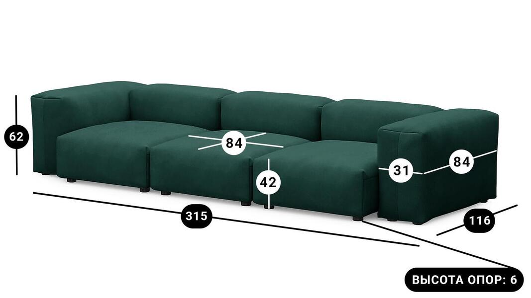 Мебель напрямую от фабрики. Можем менять габариты, цвет, варианты обивки и фасадов. Диван Фиджи трехсекционный отличается высоким качеством материалов и сборки, что гарантирует долговечность и надежность. Современный дизайн гармонично впишется в любой интерьер, а продуманная эргономика обеспечит максимальный комфорт. Преимущества дивана Фиджи трехсекционного Высокое качество и долговечность Современный и стильный дизайн Продуманная эргономика для максимального комфорта Простота в уходе и обслуживании Диван Фиджи трехсекционный - идеальное решение для тех, кто ценит качество, комфорт и красоту. Весь ассортимент мебели от фабрики производится по самым высоким стандартам с использованием передовых технологий. Мы гарантируем безупречное качество каждого изделия и полное соответствие всем необходимым нормам и требованиям. Жизнь не стоит на месте: все меняется, мы растем, а иногда просто чувствуем, что пришло время снова что-то менять. Наши диванные модули разработаны таким образом, чтобы Вы могли легко дополнять или изменять расположение или заново создавать свой образ (за счет соединителей, которые приобретаются дополнительно). Модульные транформеры Фиджи позволят Вам создать уникальный предмет мебели, отражающий Вашу индивидуальность и стиль жизни. Смешивайте и подбирайте ткани и размеры, а также добавляйте дополнительные модули, чтобы создать свой фирменный диван. Кушетка, на которой можно свернуться калачиком и почитать книгу, диван, на котором можно вздремнуть или большой гостиный гарнитур для всей семьи - наши диванные модули мгновенно позволят Вам почувствовать комфорт. Характеристики дивана Фиджи трехсекционный Функциональность Диван для отдыха Исполнение Комплектация: 3 пуфа со спинкой 84*84 см, 2 подлокотника 84*31 см Обивочный материал: Союз М Velutto 20 (велюр) Опоры: пластик ППУ 3040 Механизм трансформации Трансформер Нераскладной Габариты (Ширина*Глубина*Высота) 315*116*62 см Гарантия: 18 месяцев Обновлено:22.02.2026