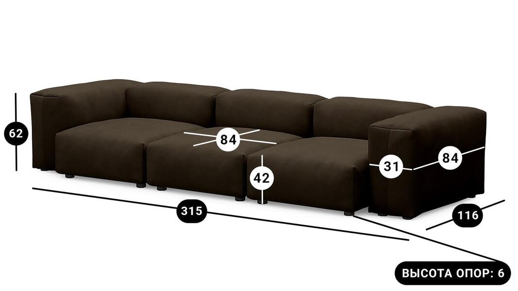 Мебель напрямую от фабрики. Можем менять габариты, цвет, варианты обивки и фасадов. Диван Фиджи трехсекционный отличается высоким качеством материалов и сборки, что гарантирует долговечность и надежность. Современный дизайн гармонично впишется в любой интерьер, а продуманная эргономика обеспечит максимальный комфорт. Преимущества дивана Фиджи трехсекционного Высокое качество и долговечность Современный и стильный дизайн Продуманная эргономика для максимального комфорта Простота в уходе и обслуживании Диван Фиджи трехсекционный - идеальное решение для тех, кто ценит качество, комфорт и красоту. Весь ассортимент мебели от фабрики производится по самым высоким стандартам с использованием передовых технологий. Мы гарантируем безупречное качество каждого изделия и полное соответствие всем необходимым нормам и требованиям. Жизнь не стоит на месте: все меняется, мы растем, а иногда просто чувствуем, что пришло время снова что-то менять. Наши диванные модули разработаны таким образом, чтобы Вы могли легко дополнять или изменять расположение или заново создавать свой образ (за счет соединителей, которые приобретаются дополнительно). Модульные транформеры Фиджи позволят Вам создать уникальный предмет мебели, отражающий Вашу индивидуальность и стиль жизни. Смешивайте и подбирайте ткани и размеры, а также добавляйте дополнительные модули, чтобы создать свой фирменный диван. Кушетка, на которой можно свернуться калачиком и почитать книгу, диван, на котором можно вздремнуть или большой гостиный гарнитур для всей семьи - наши диванные модули мгновенно позволят Вам почувствовать комфорт. Характеристики дивана Фиджи трехсекционный Функциональность Диван для отдыха Исполнение Комплектация: 3 пуфа со спинкой 84*84 см, 2 подлокотника 84*31 см Обивочный материал: Союз М Velutto 24 (велюр) Опоры: пластик ППУ 3040 Механизм трансформации Трансформер Нераскладной Габариты (Ширина*Глубина*Высота) 315*116*62 см Гарантия: 18 месяцев Обновлено:22.02.2026