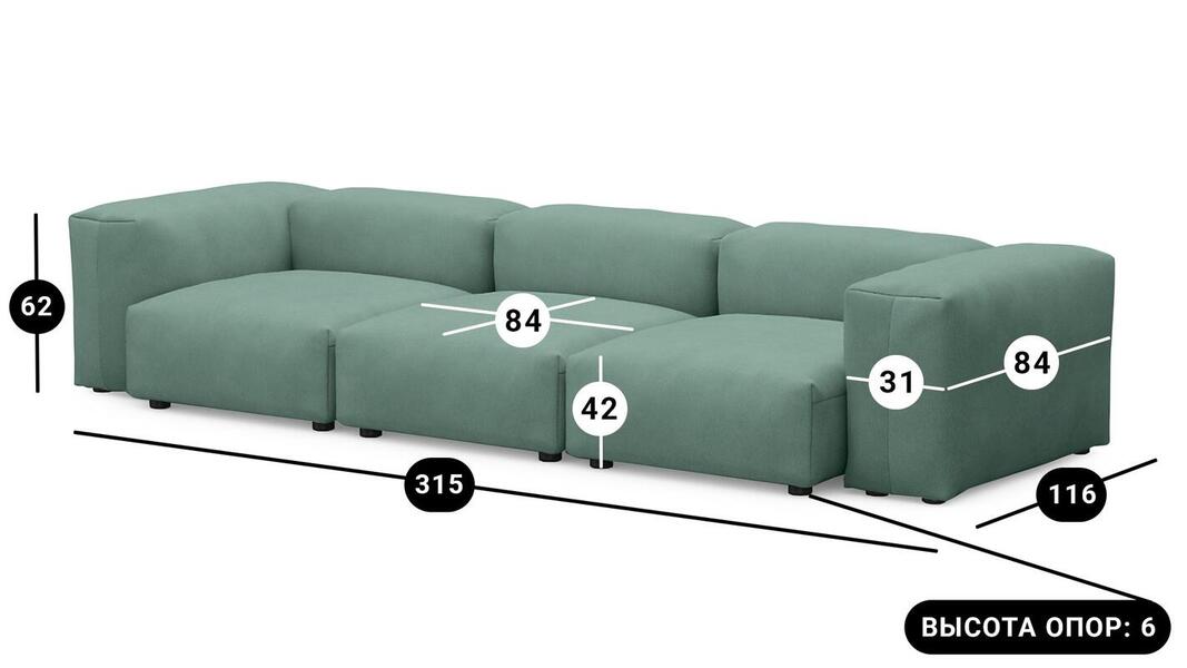 Мебель напрямую от фабрики. Можем менять габариты, цвет, варианты обивки и фасадов. Диван Фиджи трехсекционный отличается высоким качеством материалов и сборки, что гарантирует долговечность и надежность. Современный дизайн гармонично впишется в любой интерьер, а продуманная эргономика обеспечит максимальный комфорт. Преимущества дивана Фиджи трехсекционного Высокое качество и долговечность Современный и стильный дизайн Продуманная эргономика для максимального комфорта Простота в уходе и обслуживании Диван Фиджи трехсекционный - идеальное решение для тех, кто ценит качество, комфорт и красоту. Весь ассортимент мебели от фабрики производится по самым высоким стандартам с использованием передовых технологий. Мы гарантируем безупречное качество каждого изделия и полное соответствие всем необходимым нормам и требованиям. Жизнь не стоит на месте: все меняется, мы растем, а иногда просто чувствуем, что пришло время снова что-то менять. Наши диванные модули разработаны таким образом, чтобы Вы могли легко дополнять или изменять расположение или заново создавать свой образ (за счет соединителей, которые приобретаются дополнительно). Модульные транформеры Фиджи позволят Вам создать уникальный предмет мебели, отражающий Вашу индивидуальность и стиль жизни. Смешивайте и подбирайте ткани и размеры, а также добавляйте дополнительные модули, чтобы создать свой фирменный диван. Кушетка, на которой можно свернуться калачиком и почитать книгу, диван, на котором можно вздремнуть или большой гостиный гарнитур для всей семьи - наши диванные модули мгновенно позволят Вам почувствовать комфорт. Характеристики дивана Фиджи трехсекционный Функциональность Диван для отдыха Исполнение Комплектация: 3 пуфа со спинкой 84*84 см, 2 подлокотника 84*31 см Обивочный материал: велюр Vektor Марал Vivaldi 10 Опоры: пластик ППУ 3040 Механизм трансформации Трансформер Нераскладной Габариты (Ширина*Глубина*Высота) 315*116*62 см Гарантия: 18 месяцев Обновлено:22.02.2026