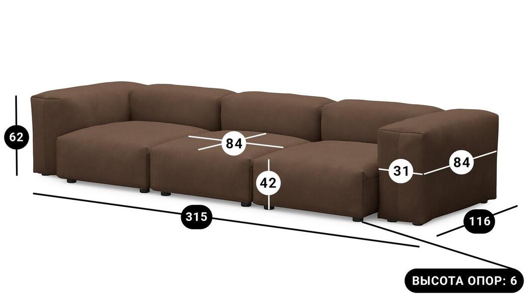 Мебель напрямую от фабрики. Можем менять габариты, цвет, варианты обивки и фасадов. Диван Фиджи трехсекционный отличается высоким качеством материалов и сборки, что гарантирует долговечность и надежность. Современный дизайн гармонично впишется в любой интерьер, а продуманная эргономика обеспечит максимальный комфорт. Преимущества дивана Фиджи трехсекционного Высокое качество и долговечность Современный и стильный дизайн Продуманная эргономика для максимального комфорта Простота в уходе и обслуживании Диван Фиджи трехсекционный - идеальное решение для тех, кто ценит качество, комфорт и красоту. Весь ассортимент мебели от фабрики производится по самым высоким стандартам с использованием передовых технологий. Мы гарантируем безупречное качество каждого изделия и полное соответствие всем необходимым нормам и требованиям. Жизнь не стоит на месте: все меняется, мы растем, а иногда просто чувствуем, что пришло время снова что-то менять. Наши диванные модули разработаны таким образом, чтобы Вы могли легко дополнять или изменять расположение или заново создавать свой образ (за счет соединителей, которые приобретаются дополнительно). Модульные транформеры Фиджи позволят Вам создать уникальный предмет мебели, отражающий Вашу индивидуальность и стиль жизни. Смешивайте и подбирайте ткани и размеры, а также добавляйте дополнительные модули, чтобы создать свой фирменный диван. Кушетка, на которой можно свернуться калачиком и почитать книгу, диван, на котором можно вздремнуть или большой гостиный гарнитур для всей семьи - наши диванные модули мгновенно позволят Вам почувствовать комфорт. Характеристики дивана Фиджи трехсекционный Функциональность Диван для отдыха Исполнение Комплектация: 3 пуфа со спинкой 84*84 см, 2 подлокотника 84*31 см Обивочный материал: велюр Vektor Марал Vivaldi 23 Опоры: пластик ППУ 3040 Механизм трансформации Трансформер Нераскладной Габариты (Ширина*Глубина*Высота) 315*116*62 см Гарантия: 18 месяцев Обновлено:22.02.2026
