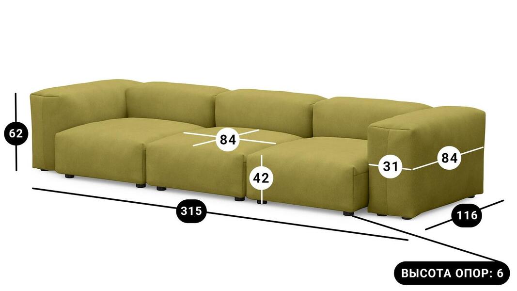 Мебель напрямую от фабрики. Можем менять габариты, цвет, варианты обивки и фасадов. Диван Фиджи трехсекционный отличается высоким качеством материалов и сборки, что гарантирует долговечность и надежность. Современный дизайн гармонично впишется в любой интерьер, а продуманная эргономика обеспечит максимальный комфорт. Преимущества дивана Фиджи трехсекционного Высокое качество и долговечность Современный и стильный дизайн Продуманная эргономика для максимального комфорта Простота в уходе и обслуживании Диван Фиджи трехсекционный - идеальное решение для тех, кто ценит качество, комфорт и красоту. Весь ассортимент мебели от фабрики производится по самым высоким стандартам с использованием передовых технологий. Мы гарантируем безупречное качество каждого изделия и полное соответствие всем необходимым нормам и требованиям. Жизнь не стоит на месте: все меняется, мы растем, а иногда просто чувствуем, что пришло время снова что-то менять. Наши диванные модули разработаны таким образом, чтобы Вы могли легко дополнять или изменять расположение или заново создавать свой образ (за счет соединителей, которые приобретаются дополнительно). Модульные транформеры Фиджи позволят Вам создать уникальный предмет мебели, отражающий Вашу индивидуальность и стиль жизни. Смешивайте и подбирайте ткани и размеры, а также добавляйте дополнительные модули, чтобы создать свой фирменный диван. Кушетка, на которой можно свернуться калачиком и почитать книгу, диван, на котором можно вздремнуть или большой гостиный гарнитур для всей семьи - наши диванные модули мгновенно позволят Вам почувствовать комфорт. Характеристики дивана Фиджи трехсекционный Функциональность Диван для отдыха Исполнение Комплектация: 3 пуфа со спинкой 84*84 см, 2 подлокотника 84*31 см Обивочный материал: велюр Vektor Марал Vivaldi 33 Опоры: пластик ППУ 3040 Механизм трансформации Трансформер Нераскладной Габариты (Ширина*Глубина*Высота) 315*116*62 см Гарантия: 18 месяцев Обновлено:22.02.2026
