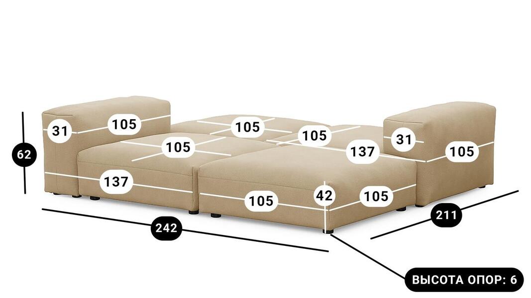 Мебель напрямую от фабрики. Можем менять габариты, цвет, варианты обивки и фасадов. Диван Фиджи отличается высоким качеством материалов и сборки, что гарантирует долговечность и надежность. Современный дизайн гармонично впишется в любой интерьер, а продуманная эргономика обеспечит максимальный комфорт. Преимущества дивана Фиджи Высокое качество и долговечность Современный и стильный дизайн Продуманная эргономика для максимального комфорта Простота в уходе и обслуживании Диван Фиджи - идеальное решение для тех, кто ценит качество, комфорт и красоту. Весь ассортимент мебели от фабрики производится по самым высоким стандартам с использованием передовых технологий. Мы гарантируем безупречное качество каждого изделия и полное соответствие всем необходимым нормам и требованиям. Жизнь не стоит на месте: все меняется, мы растем, а иногда просто чувствуем, что пришло время снова что-то менять. Наши диванные модули разработаны таким образом, чтобы Вы могли легко дополнять или изменять расположение или заново создавать свой образ (за счет соединителей, которые приобретаются дополнительно). Модульные транформеры Фиджи позволят Вам создать уникальный предмет мебели, отражающий Вашу индивидуальность и стиль жизни. Смешивайте и подбирайте ткани и размеры, а также добавляйте дополнительные модули, чтобы создать свой фирменный диван. Кушетка, на которой можно свернуться калачиком и почитать книгу, диван, на котором можно вздремнуть или большой гостиный гарнитур для всей семьи - наши диванные модули мгновенно позволят Вам почувствовать комфорт. Характеристики дивана Фиджи Функциональность Диван для отдыха Исполнение Комплектация: 2 пуфа со спинкой 105*137 см, 2 пуфа 105*105 см Обивочный материал: Союз М Velutto 02 (велюр) Опоры: пластик ППУ 3040 Механизм трансформации Трансформер Нераскладной Габариты (Ширина*Глубина*Высота) 242*211*62 см Гарантия: 18 месяцев Обновлено:22.02.2026